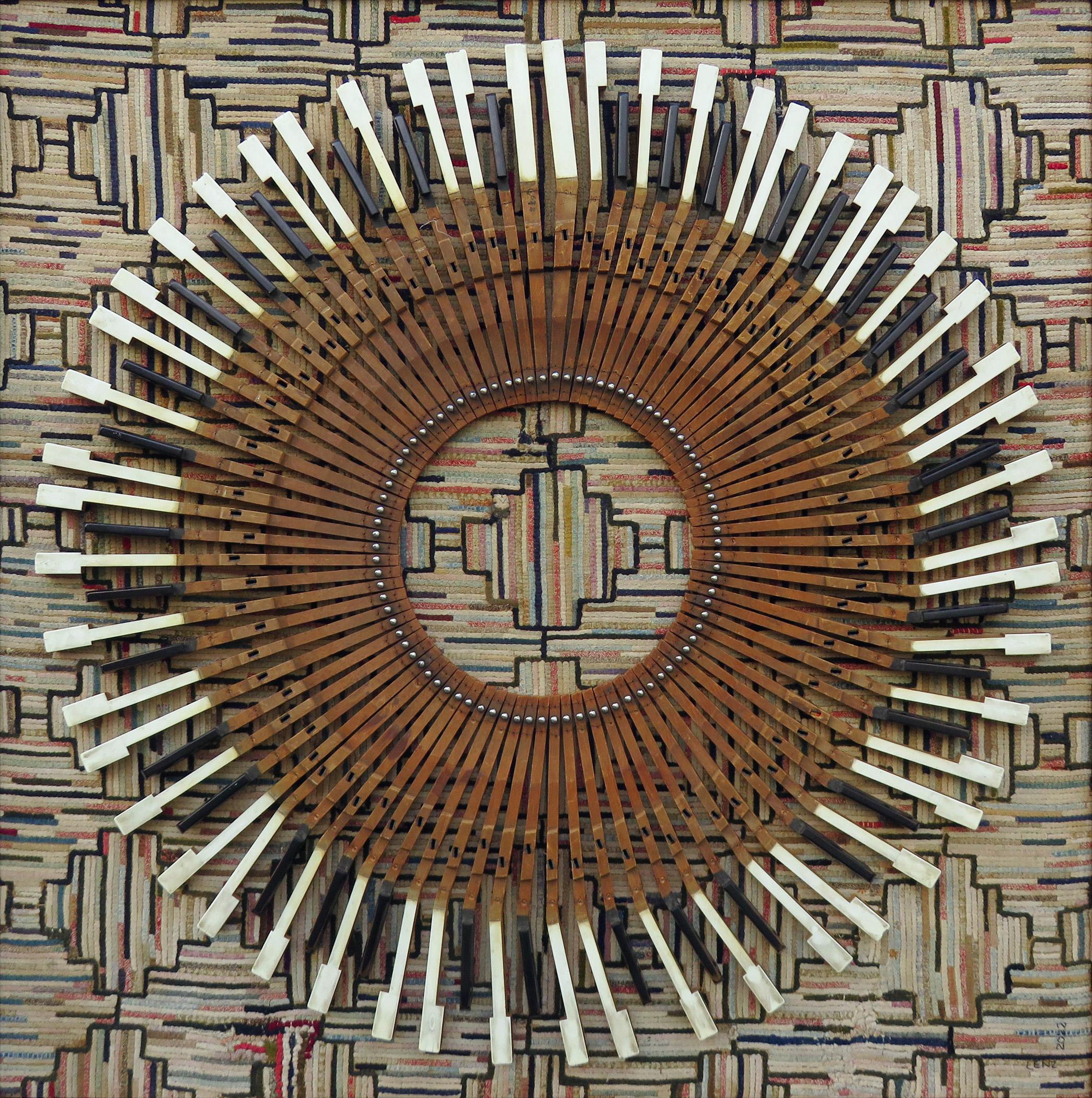 Browse the Collection Mandala CXI Susan Lenz Size 53 in x 53 in (135 cm x 135 cm) Year 2022 Gallery 2022 Portfolio Collection (Juried Artist Showcase) Related Publications Art Quilt Quarterly - #28 Price $0.00 Buy Now >> Collection of Carolina Steinway Carolina Steinway donated an old, broken upright Steinway to my stash of found objects and then purchased the resulting artwork. Materials Steinway piano keys, vintage hooked rug pieces Techniques Hand stitched