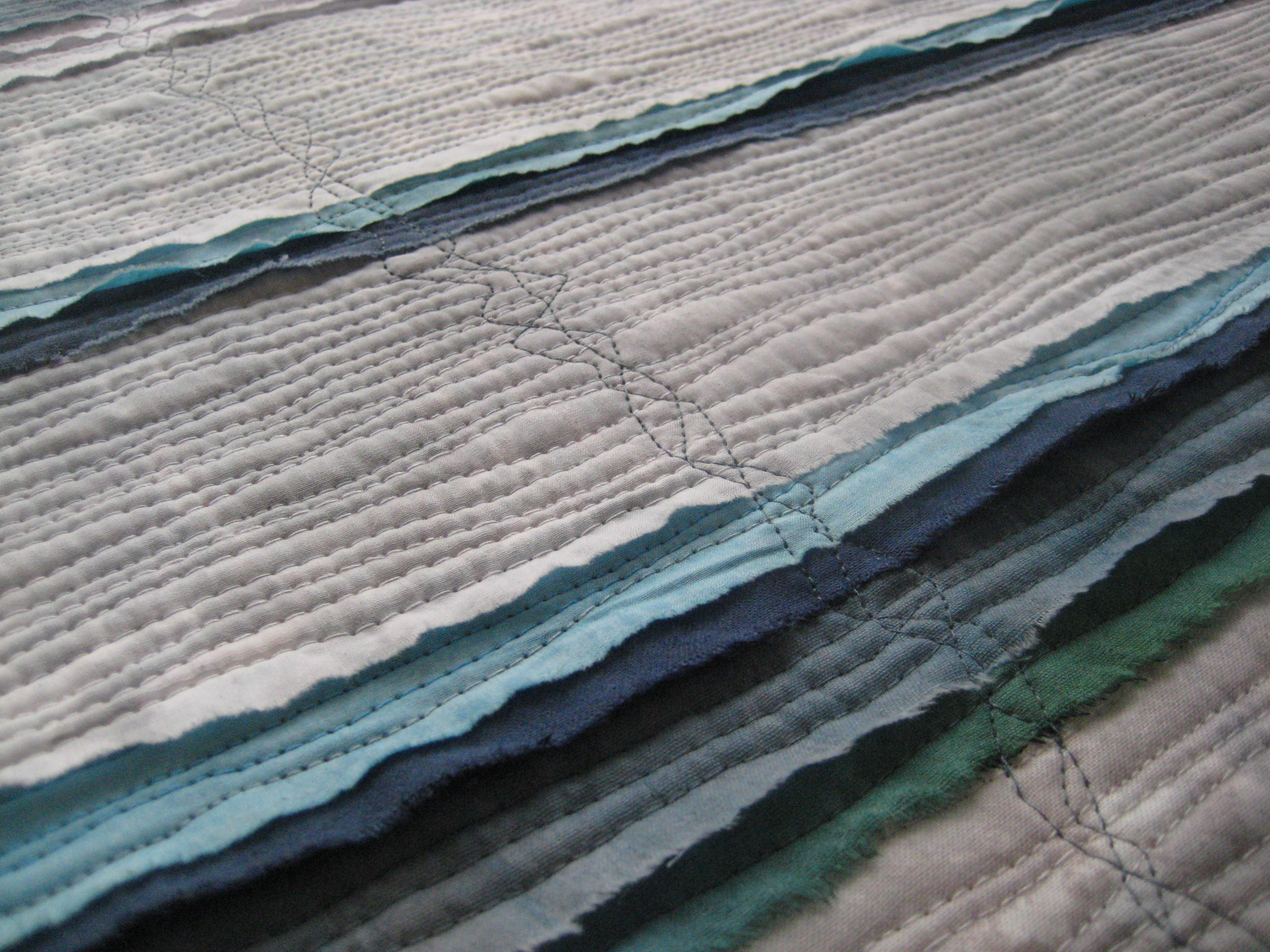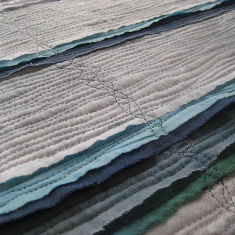 This quilt is part of my series on water and especially on tides. It is also part of my new series on one free sewn side strips adding 3D effect to the whole piece.