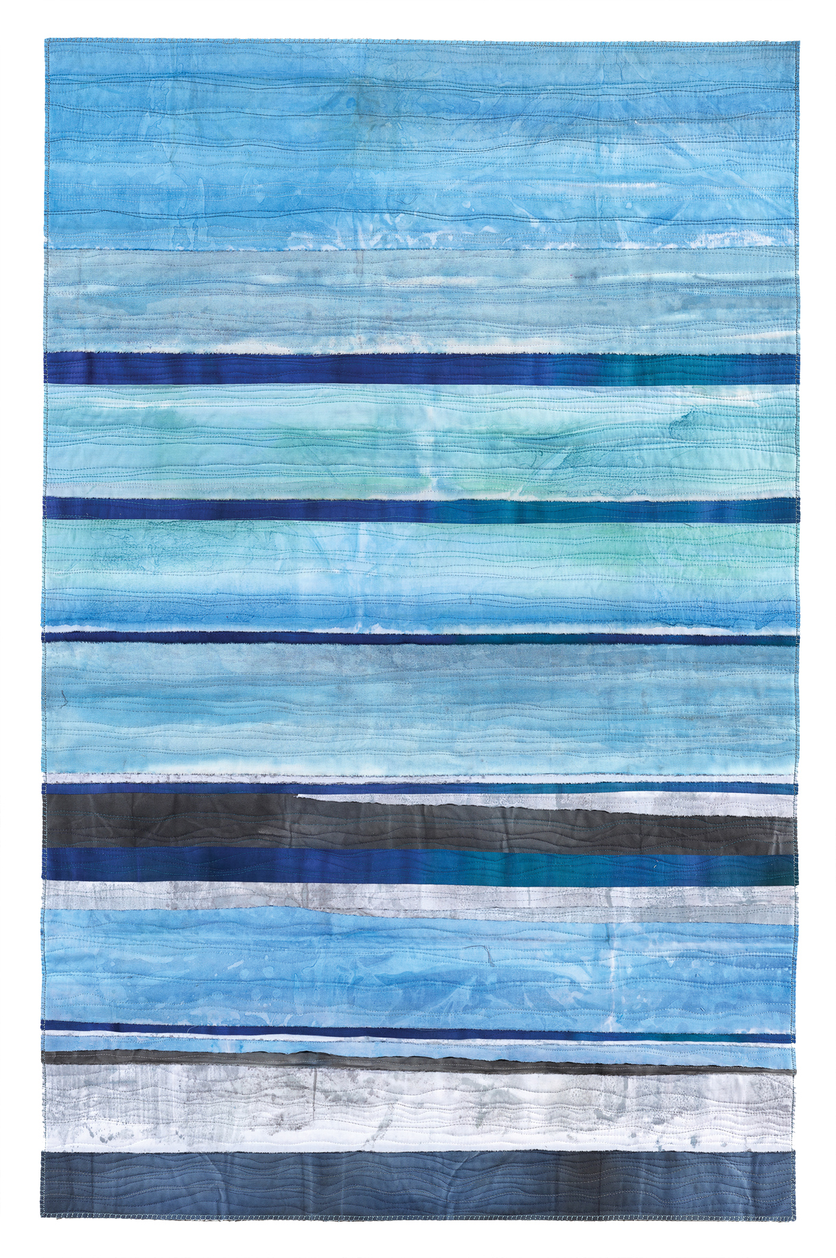 This quilt speaks of a calm moment during low tide showing some remaining spots of water on the sea shore; it is a peaceful moment in a calm day.