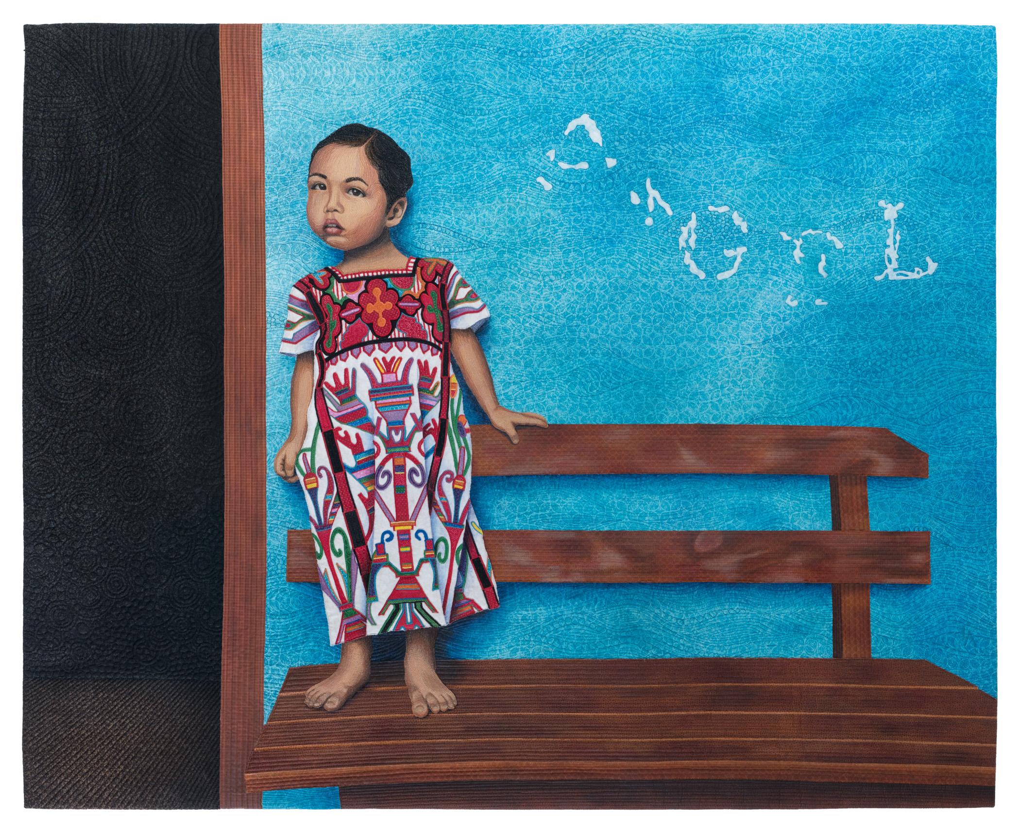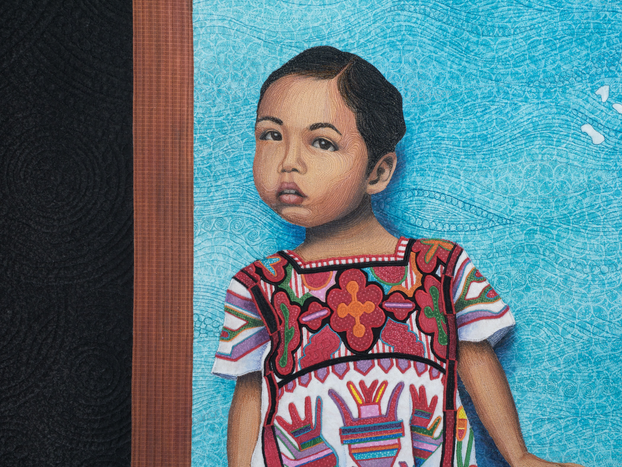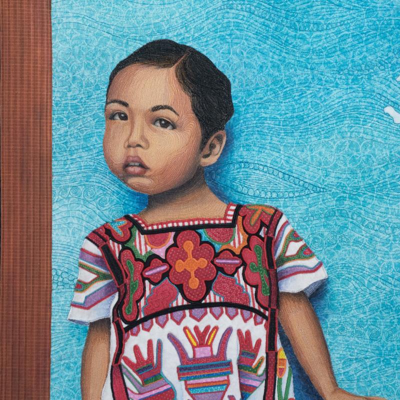 In the village of Yetla, Oaxaca, the traditional dress huipils are decorated with stylized red, geometric trees, one design for each of the 4 stages of womanhood. Maria’s tree is a sprawling, wildly branching sapling, characterizing a child running about and stretching upwards day by day like a fast growing plant.