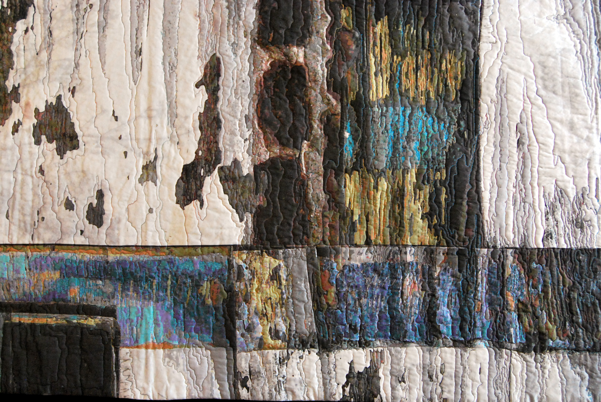 Browse the Collection Marking Time Barbara Schneider Size 38 in x 74 in (97 cm x 188 cm) Year 2014 Gallery Historic Detail (SAQA Virtual Gallery) Price $0.00 Buy Now >> A collage of images from the old industrial building that my studio is located in. Built in 1884, it has wonderful aged surfaces everywhere.