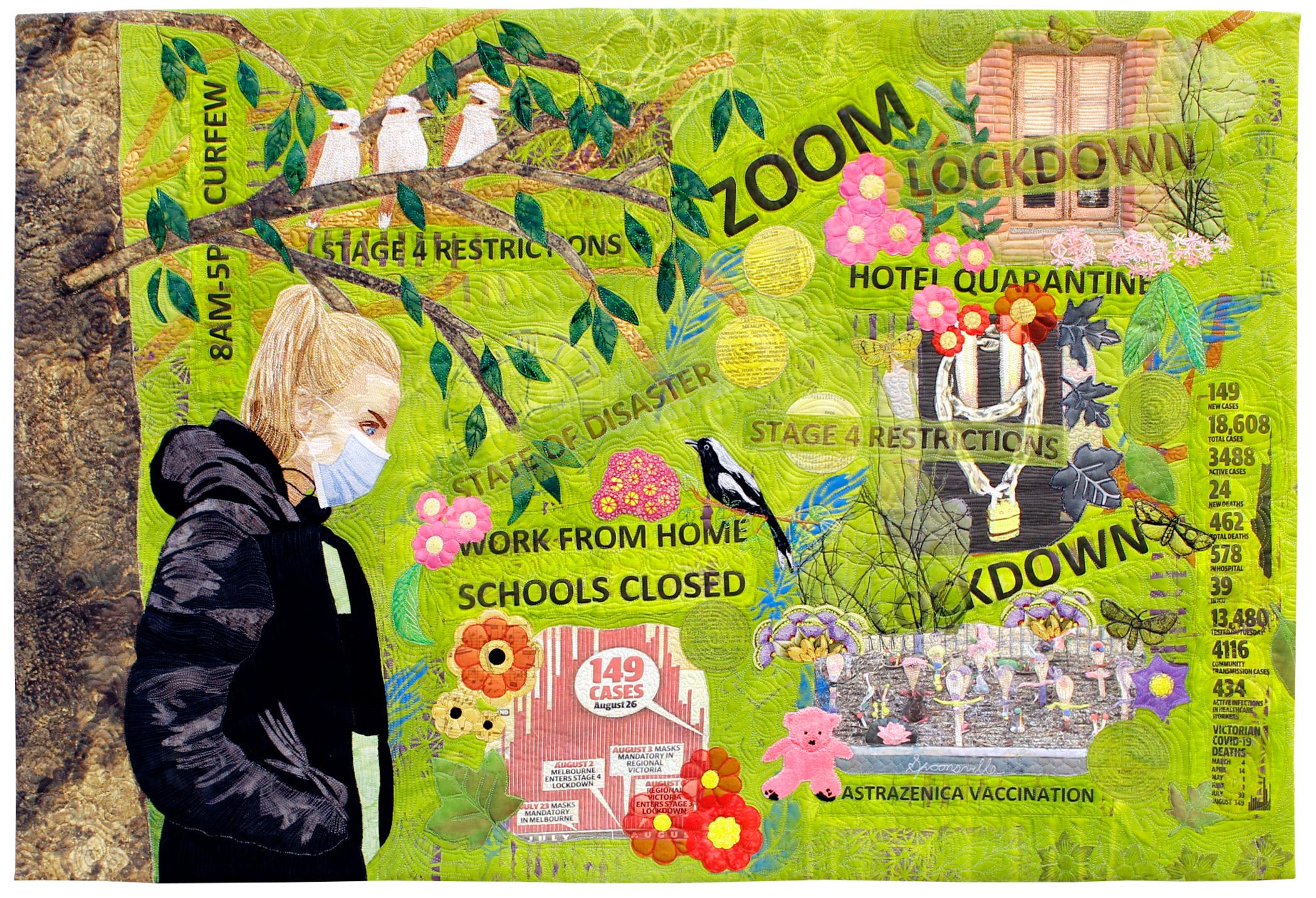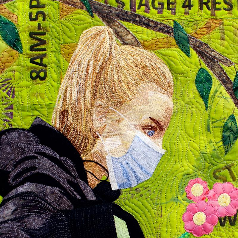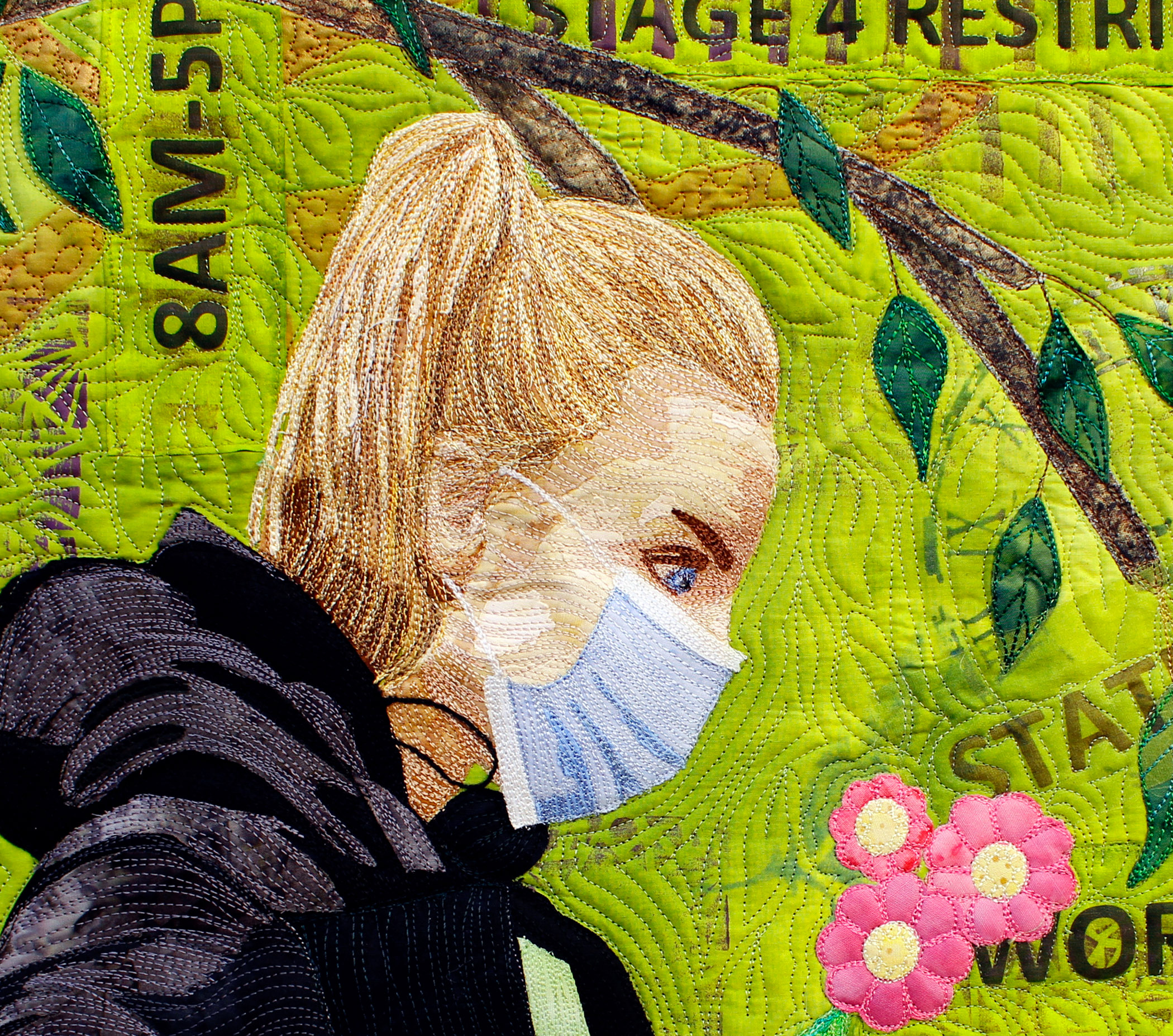 Painted, sun printed, stamped, stenciled, machine appliquéd, hand and machine embroidered, digitally printed, machine quilted