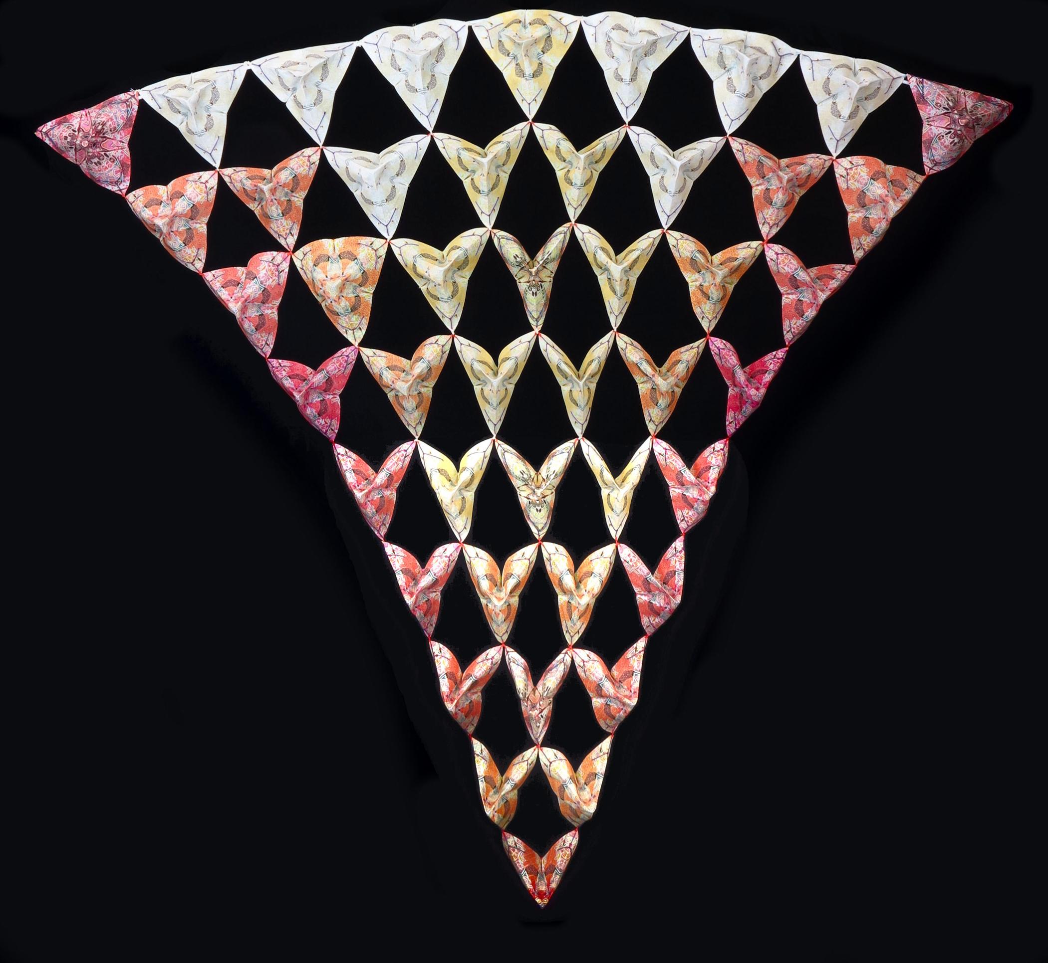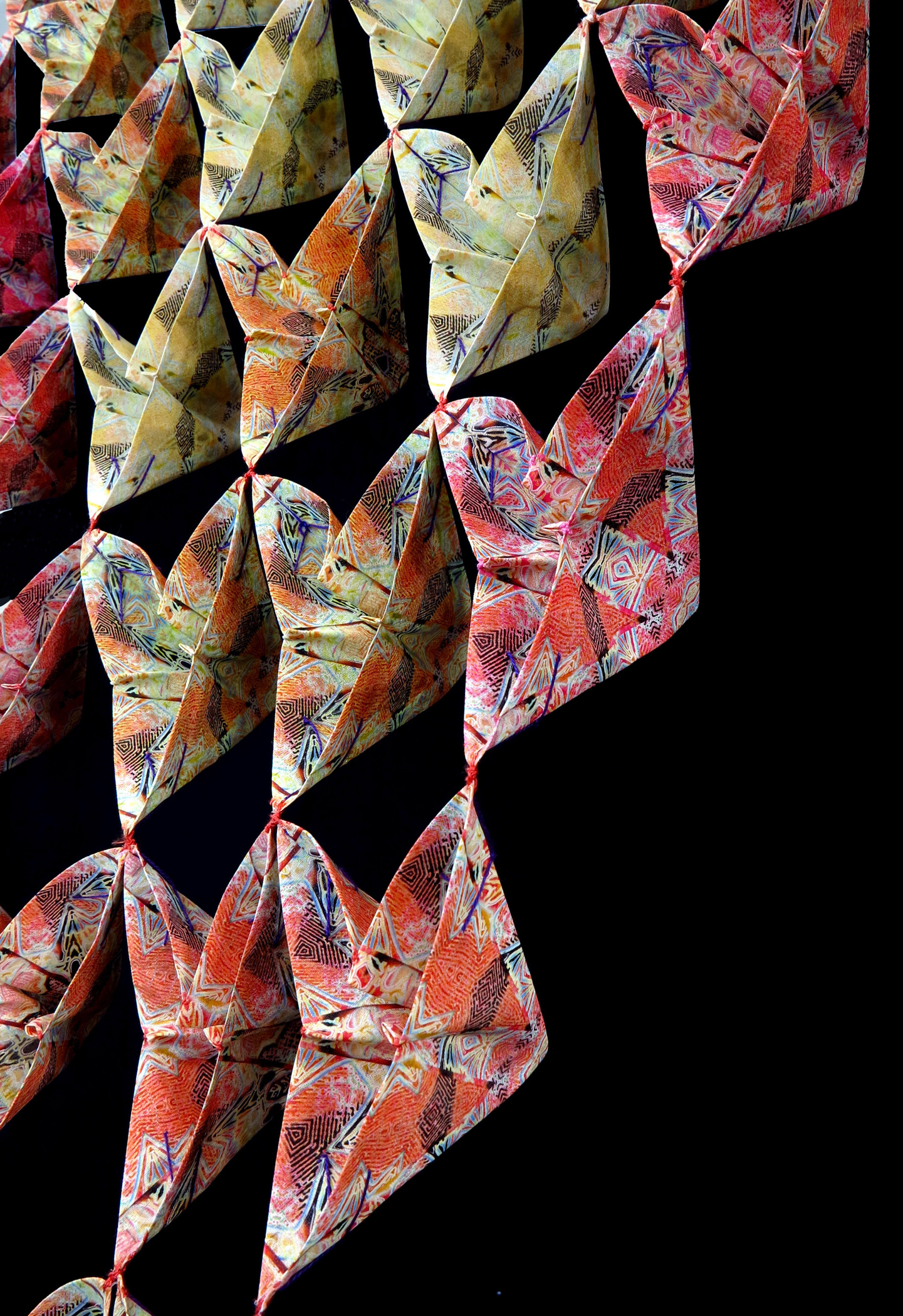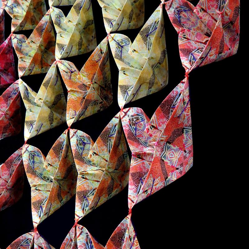 Digital photo, ink, cotton organdie, digitally manipulated, printed, origami folded, hand stitched