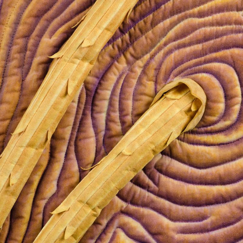 Drawn, painted, free motion quilted, stitched, stuffed