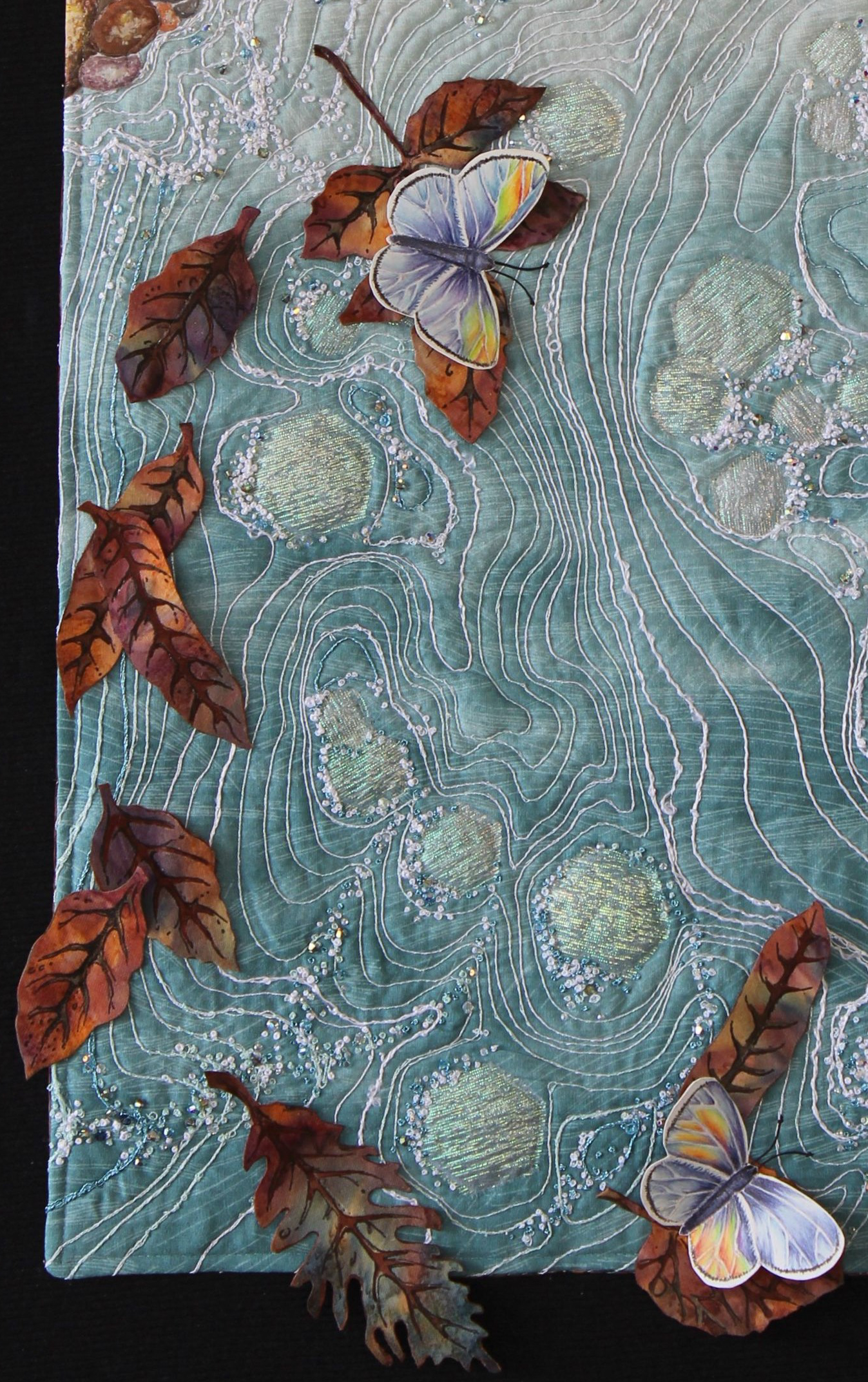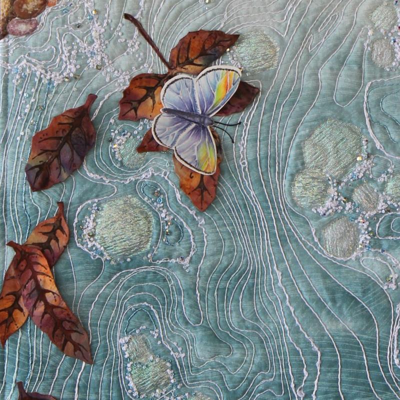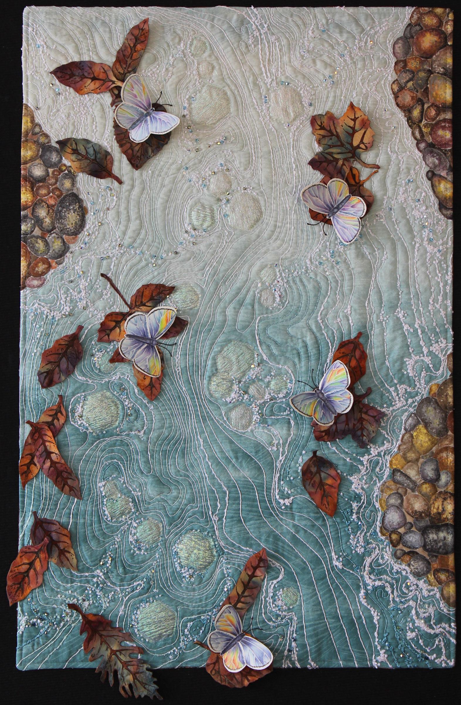 I created Midstream as I researched Montana's native butterfly species. Exploring the life habits of the Silvery Blue Hairstreak evolved into thoughts on how although they recognize each other as being the same species, they are really somewhat solitary creatures. I think that we as humans are similar - we are also blown by the wind, traveling the currents, often going solo. I feel that we humans can make life better by fostering community, showing compassion and reaching out to one another.