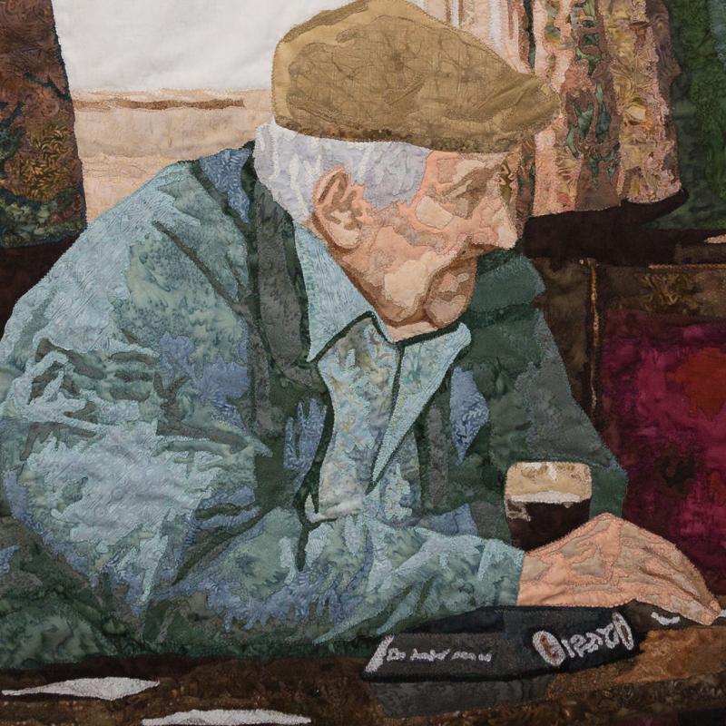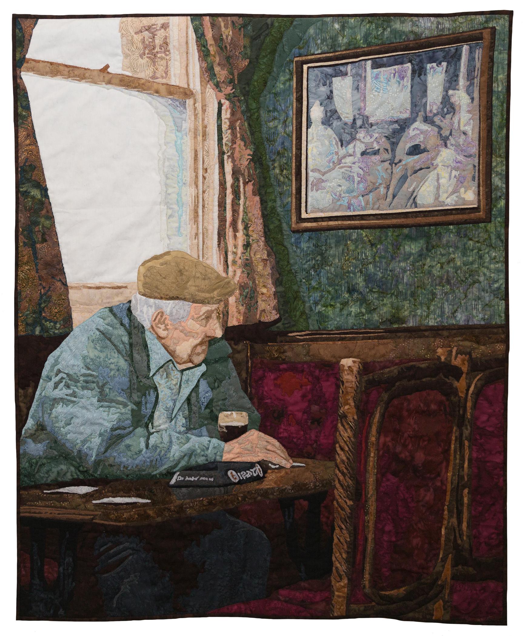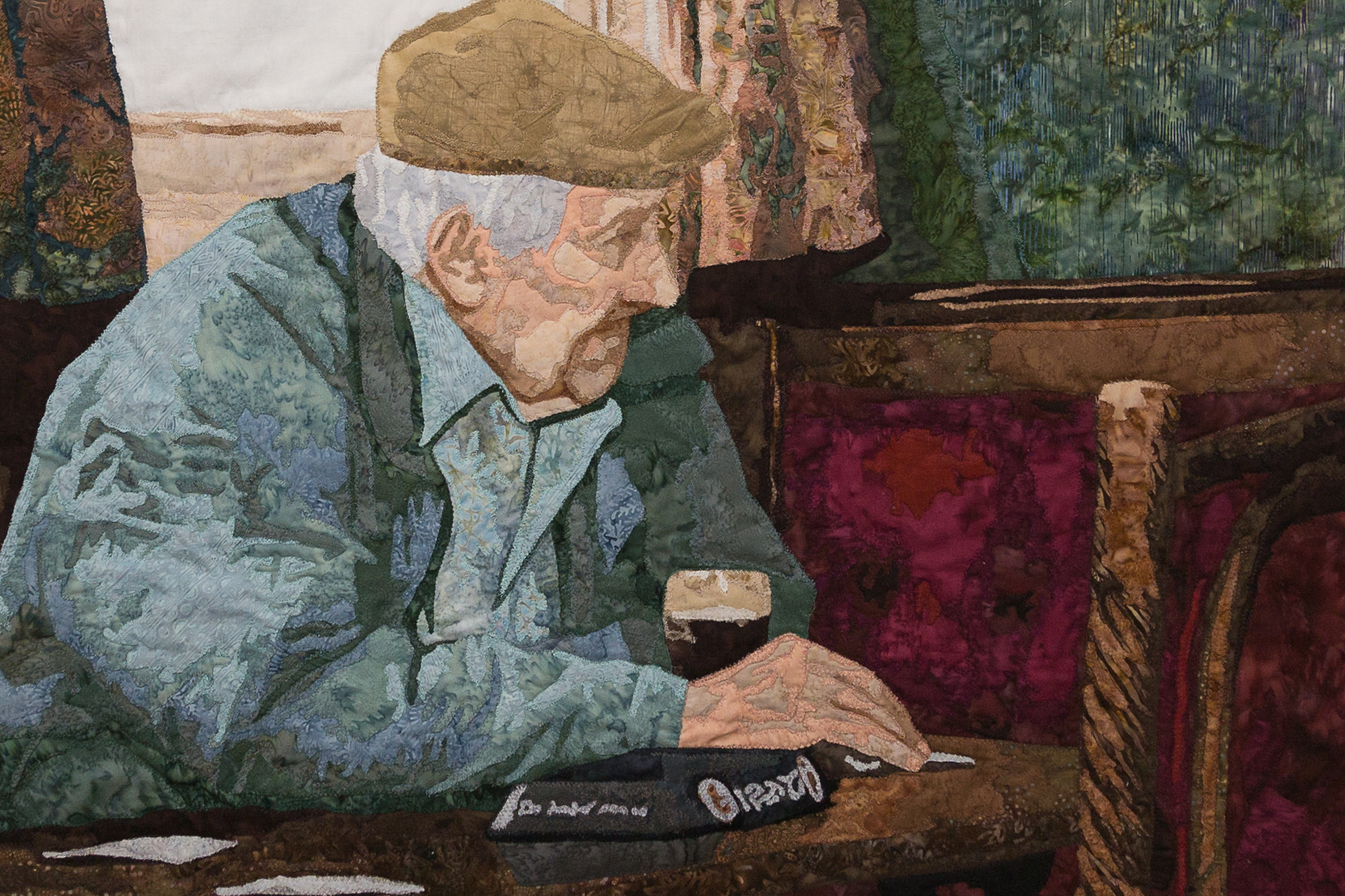 We spotted a pub down the street and decided to kill the hour there. My family sat down and I looked over to the corner of the room to see an adorable old man sitting by himself with a Guinness. I was so taken with this scene. I had to immortalize him in a piece, so twelve years later, he is fondly known to us as Allistair in “Missed Trains.”
