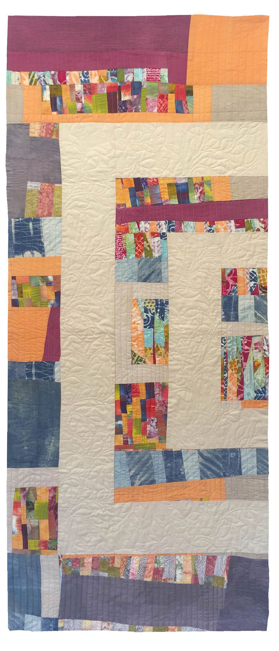 My art quilting journey has spread through many seasons and changes. One of my earliest challenges was that I wanted to create all my own fabric and designs for my quilts. Dyeing led to printing, transferring, and painting on any type of fabric I could get my hands on. This quilt has a combination of most of the fabrics I have created in the past 10 years. I want to constantly stretch the boundaries to make “the best” with each new creation in each season of my life.