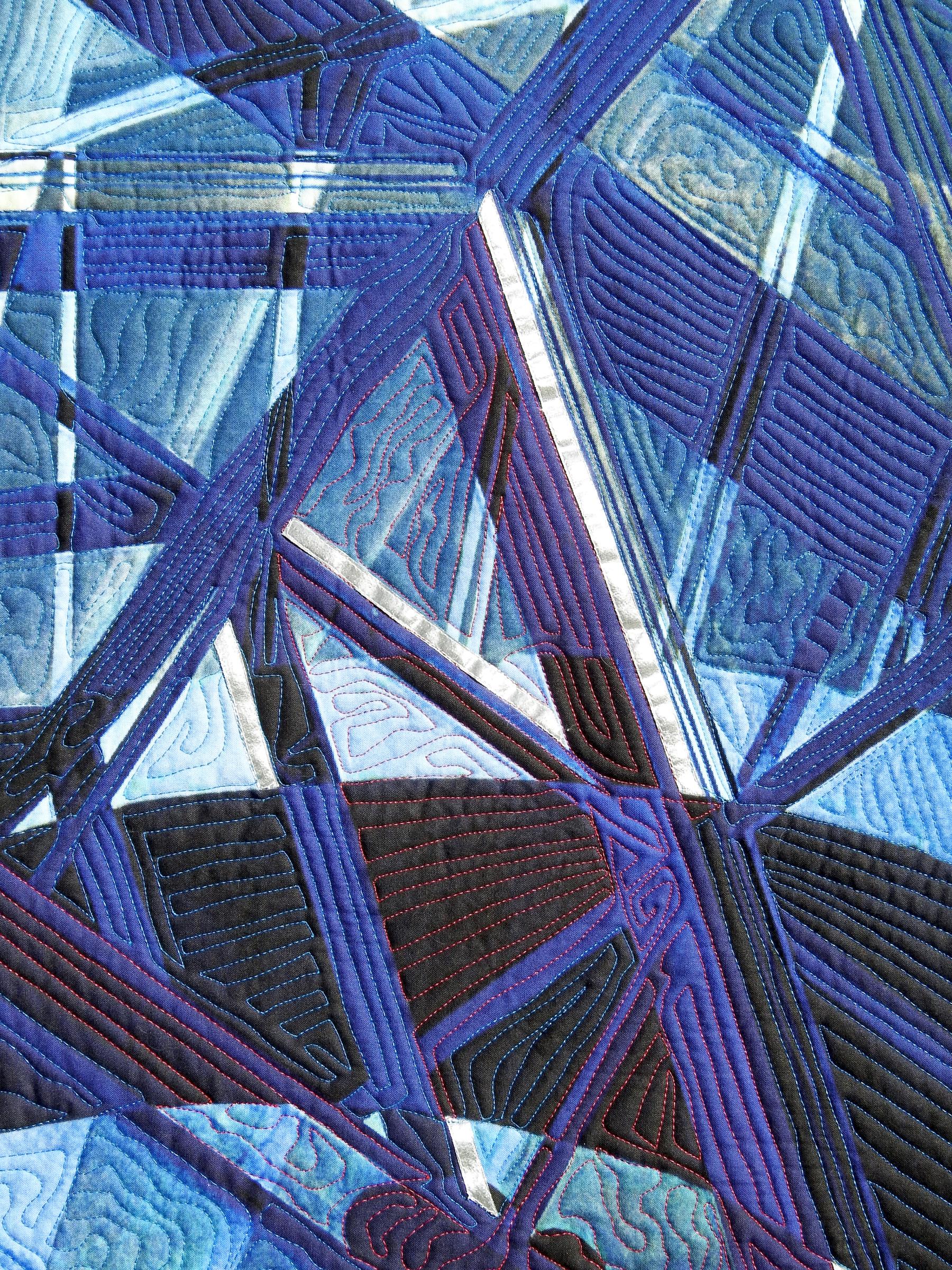 Drawn, digitally designed, printed, appliquéd, free motion quilted