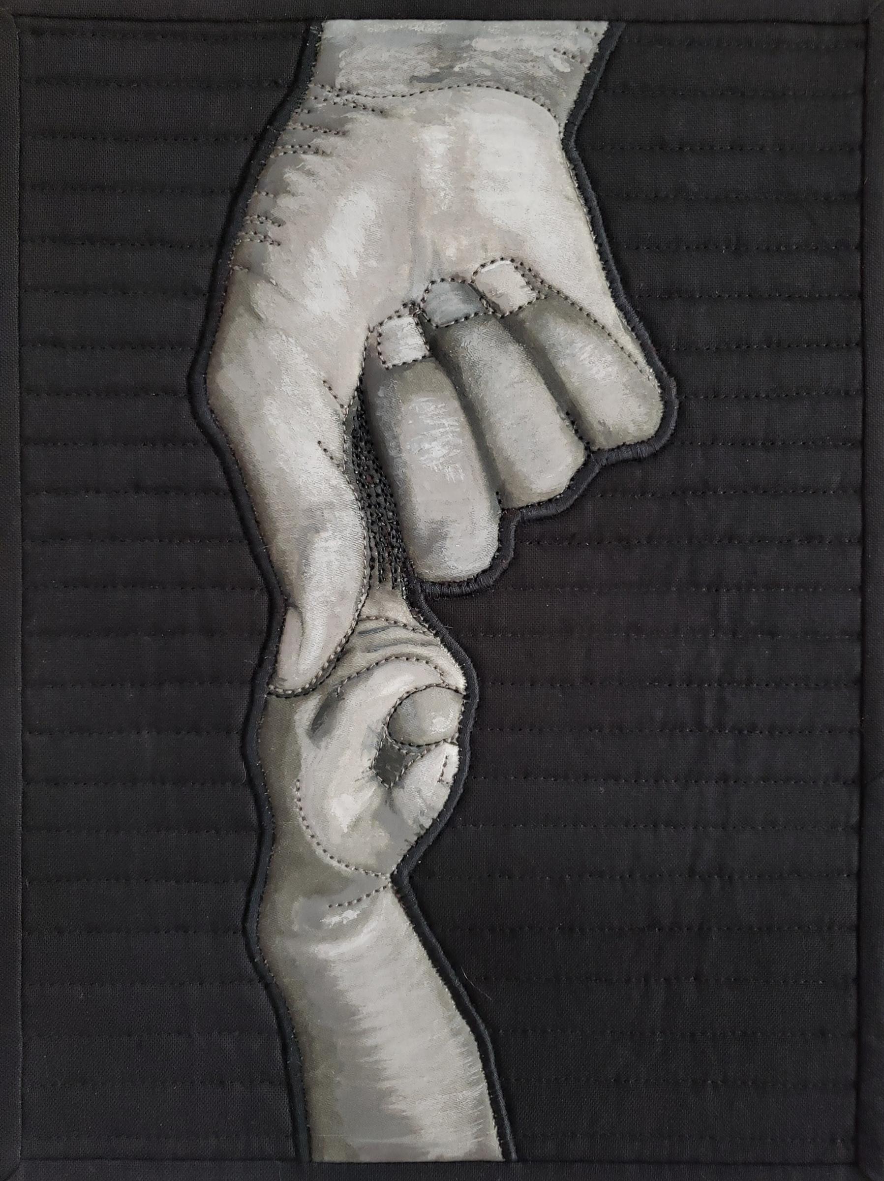 Browse the Collection A Mother's Love Teresa Stoller Size 9 in x 7 in (23 cm x 18 cm) Year 2021 Gallery Words Fail (SAQA Virtual Gallery) Price $0.00 Buy Now >> Baby’s hand grasping mother’s finger – delicate, gentle, yet, with the strength and intensity of a mother’s love that is unbreakable.