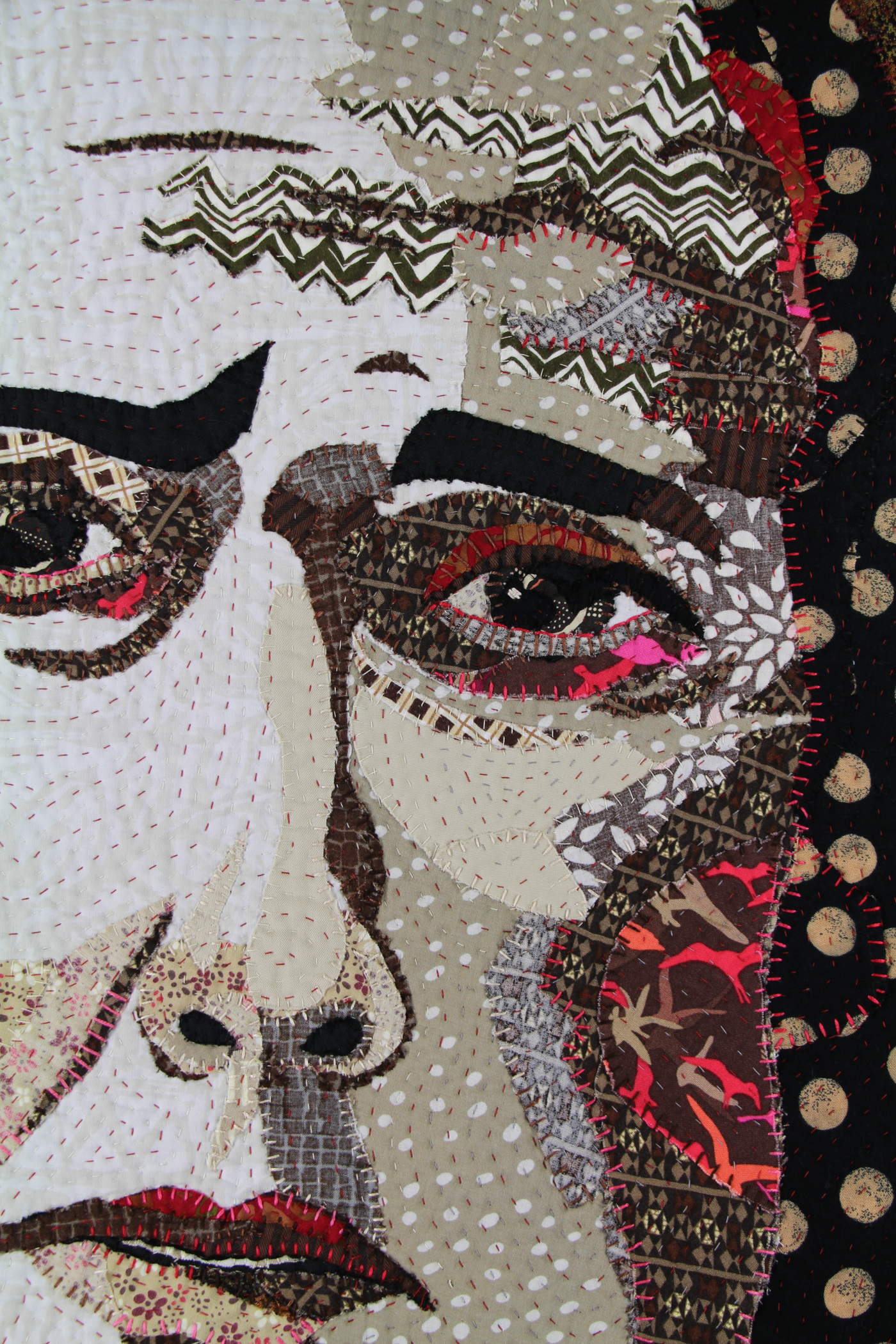 Raw edge hand appliquéd, hand quilted