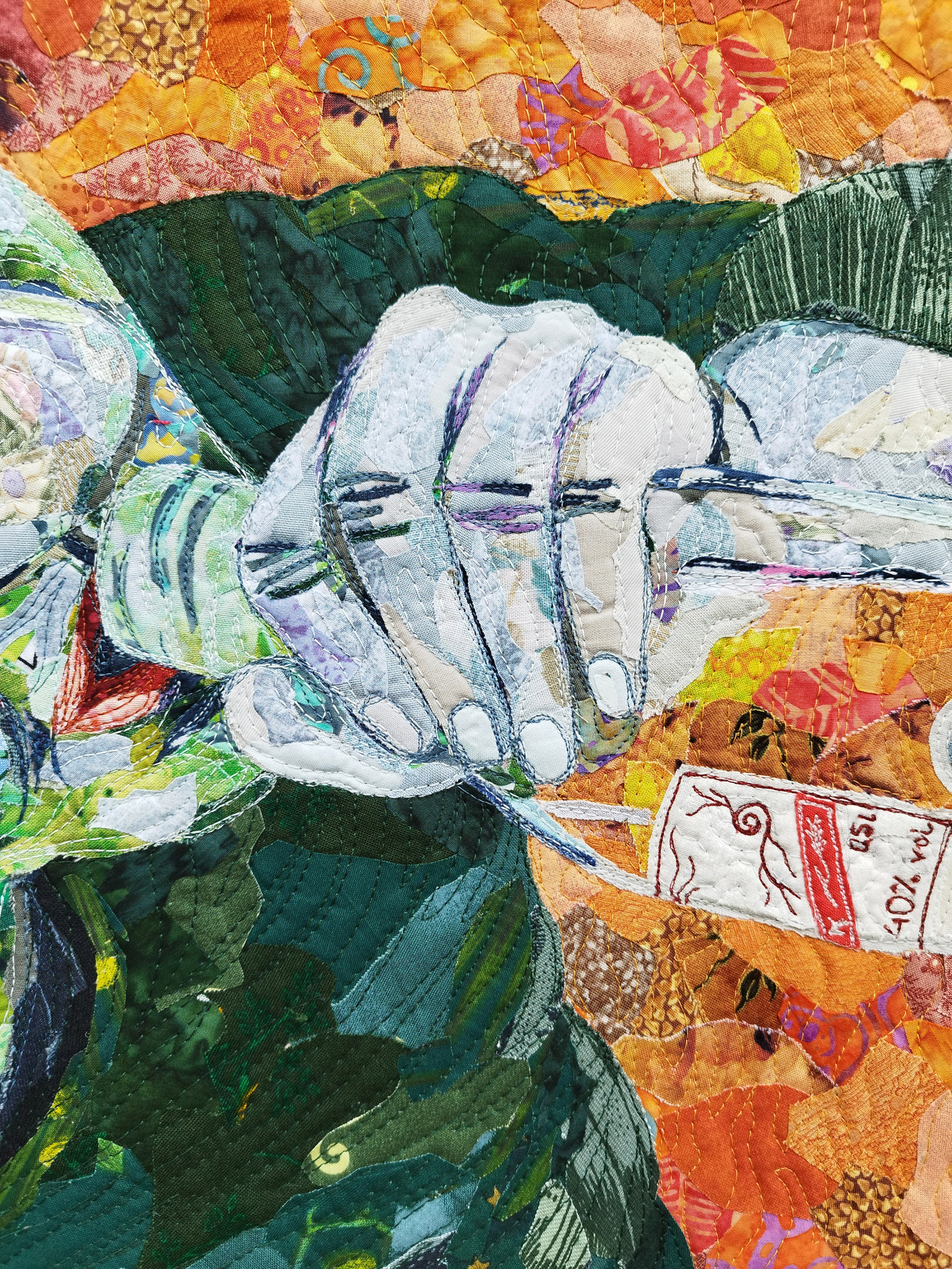 Collaged, machine stitched