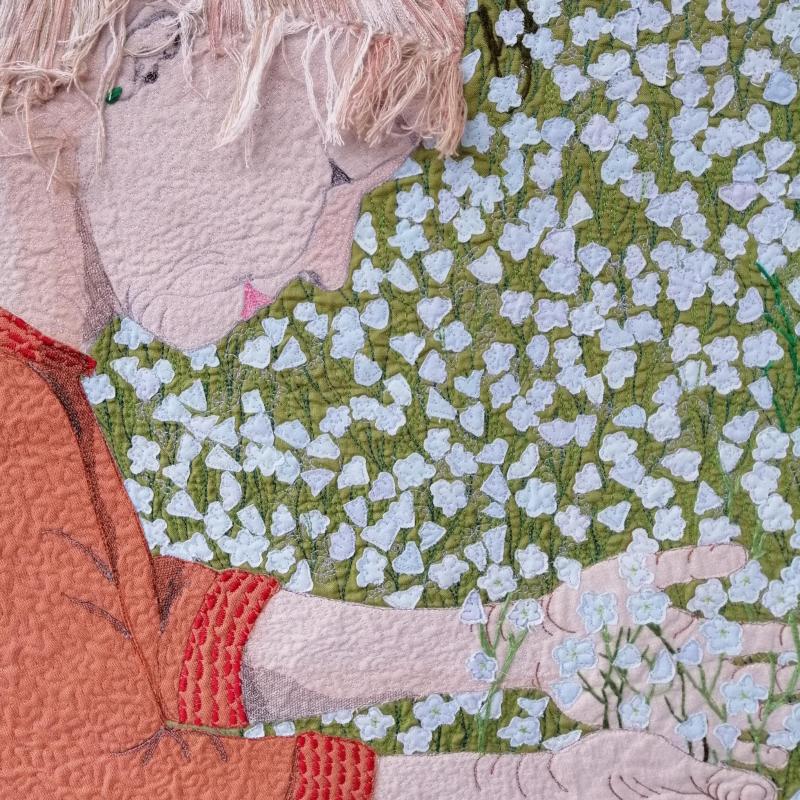 I created this piece for an exhibition where the requirement was to use linen fabrics. I wanted to show a woman's love for this wonderful plant.