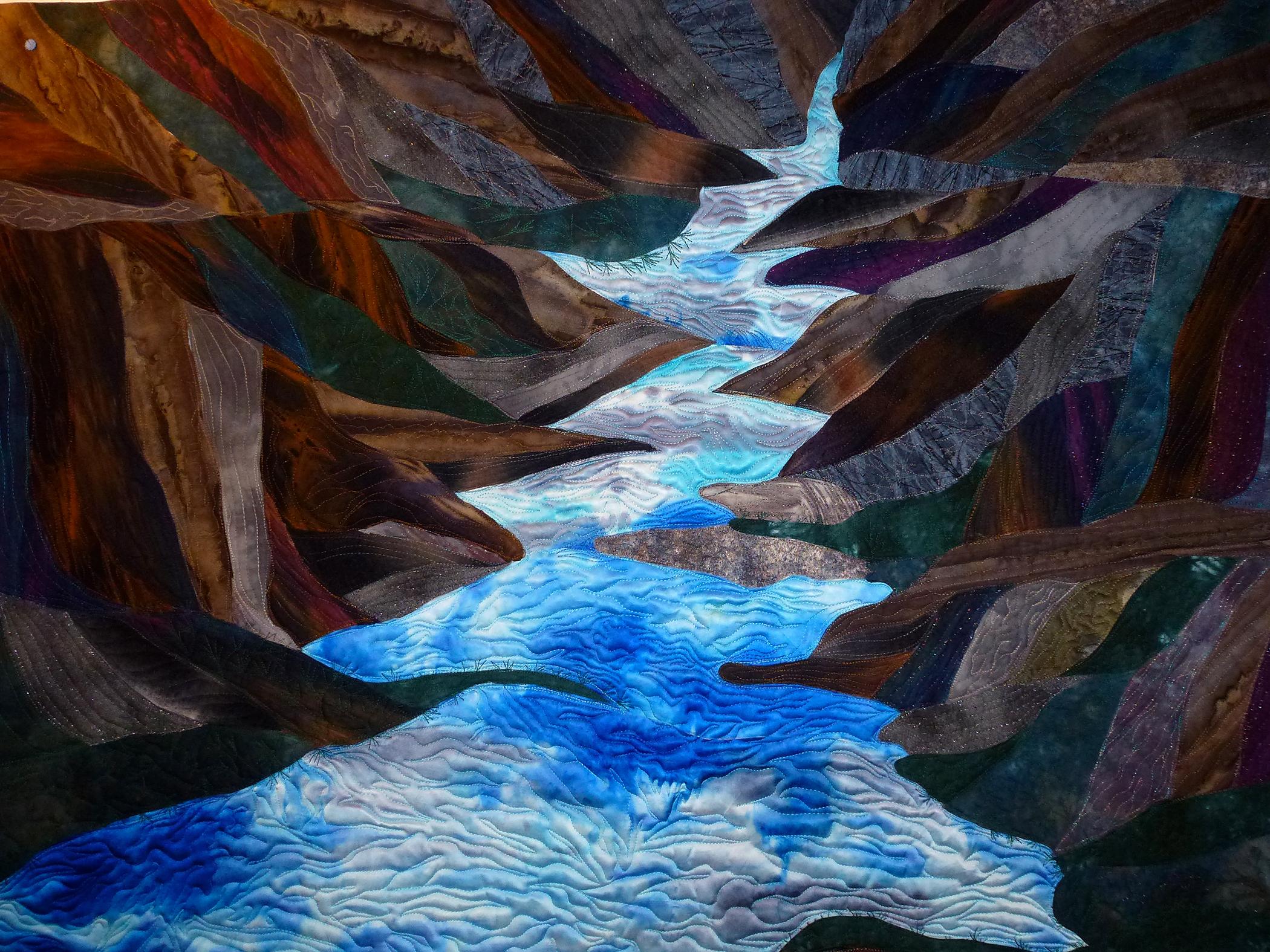 Nankoweap is one of the roughest white water passages in the Grand Canyon. It was the thrill of a lifetime to navigate this passage on my 60th birthday. This quilt is part of the Intersections/Canyon series, a two part collaboration of 12 art quilts and 12 photographs done with wildlands photographer, Christopher Brown.