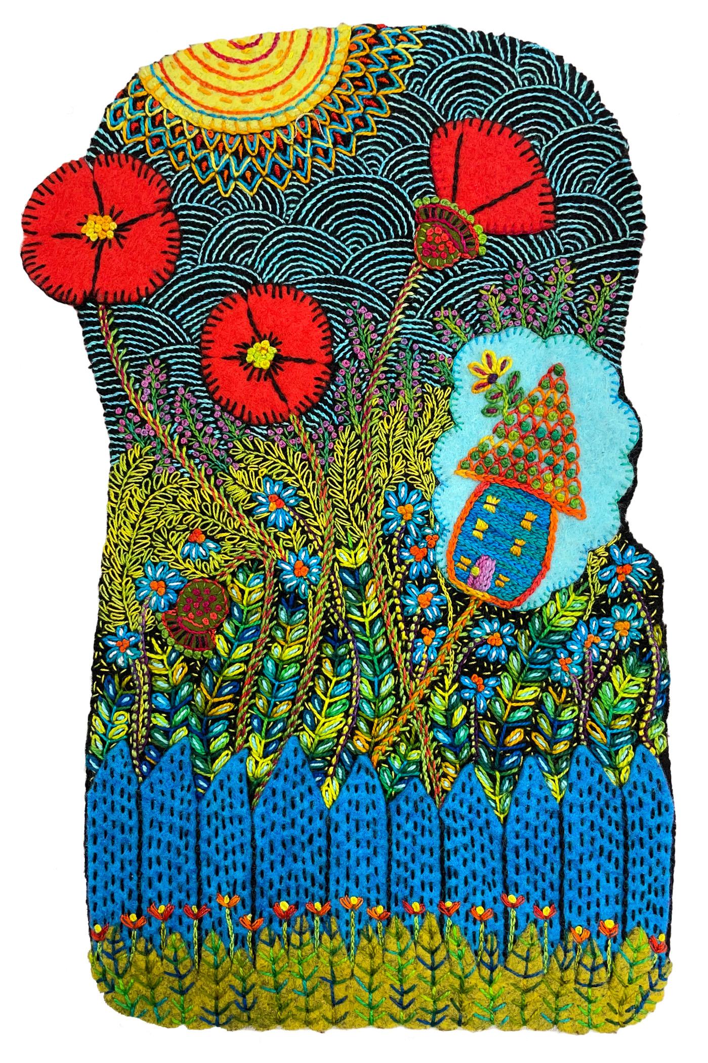 My idea of gardening is to spend 5 minutes pulling weeds and another 60 minutes sitting on the patio with a cool drink. You’ve guessed it. I’m a natural gardener and let my plants decide where to grow. Inspired by those plants indigenous only to my backyard, I imagine them happily sneaking up on our birdhouse.