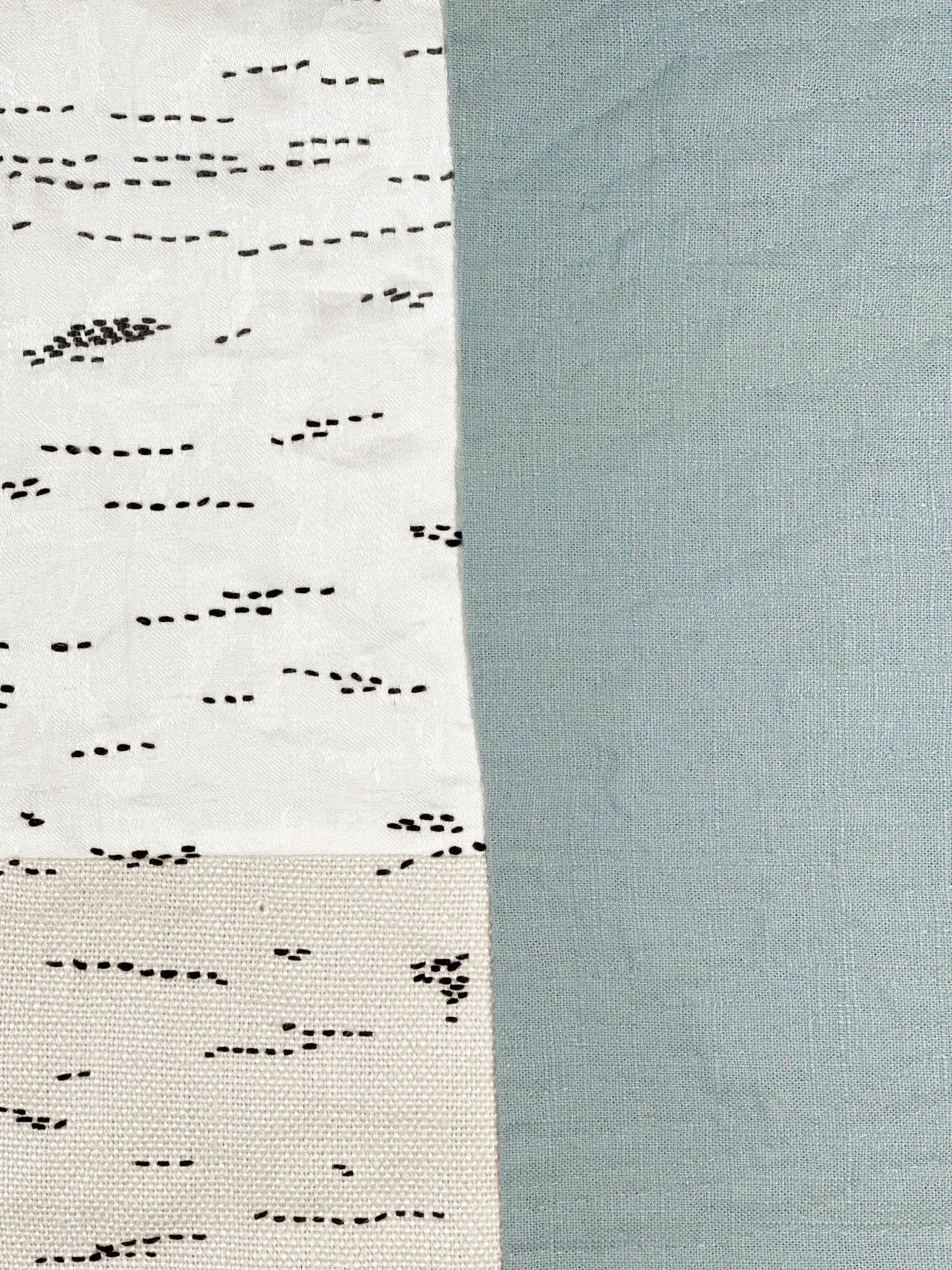 Interior design fabric samples, cotton, linen, embroidery floss, thread