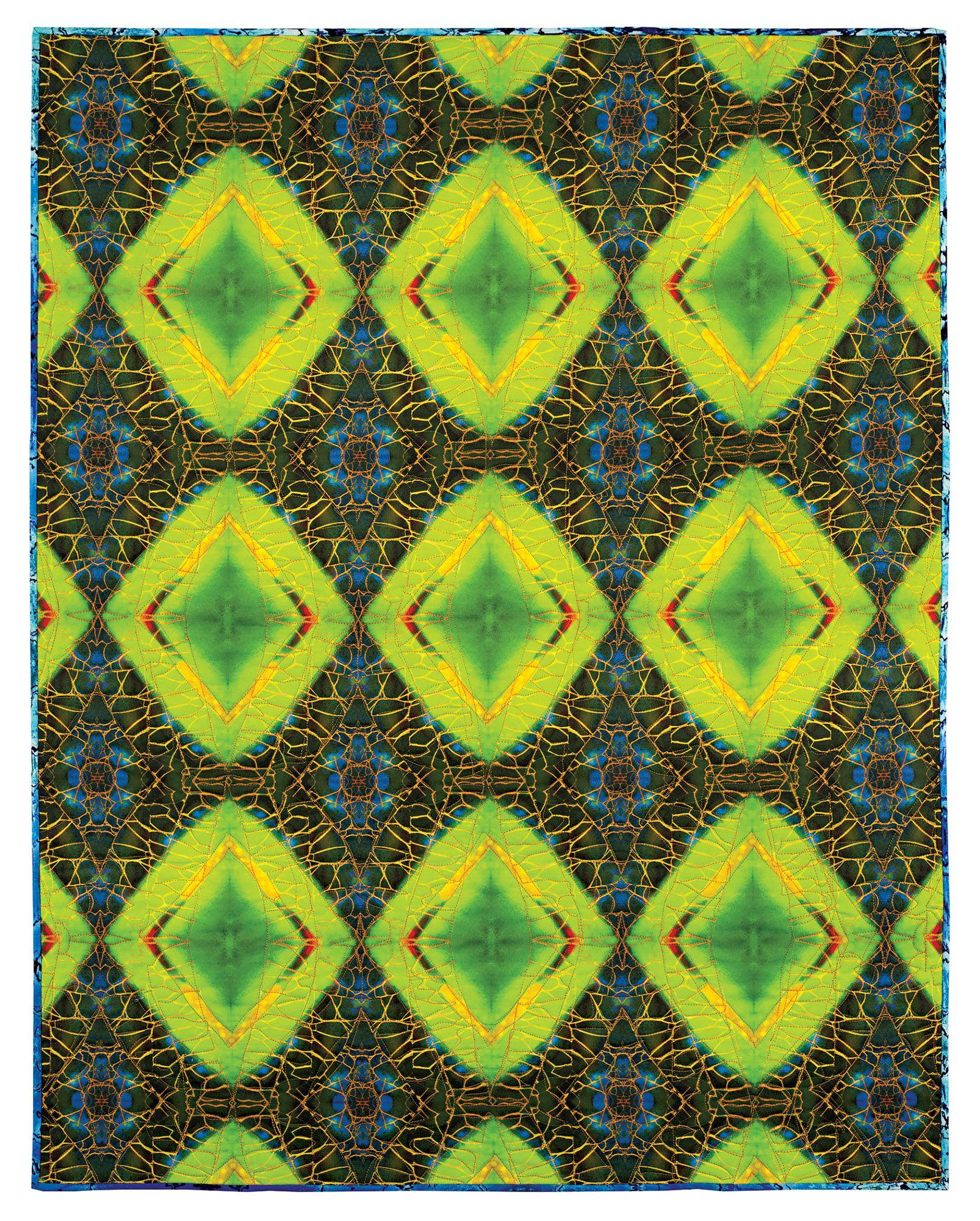 Mixed media, digitally developed, scanned, dyed, printed, machine quilted