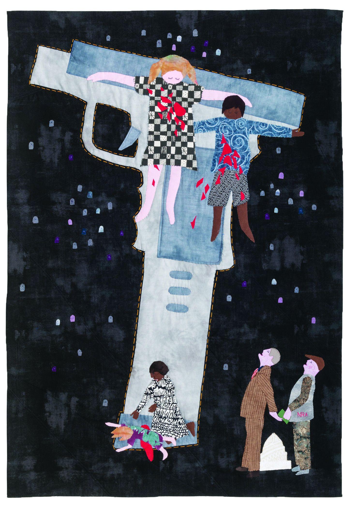 For this piece, I created the most shocking image I could think of to express my horror at school shootings and my disappointment in our government. It is based on Marc Chagall's White Crucifixion.