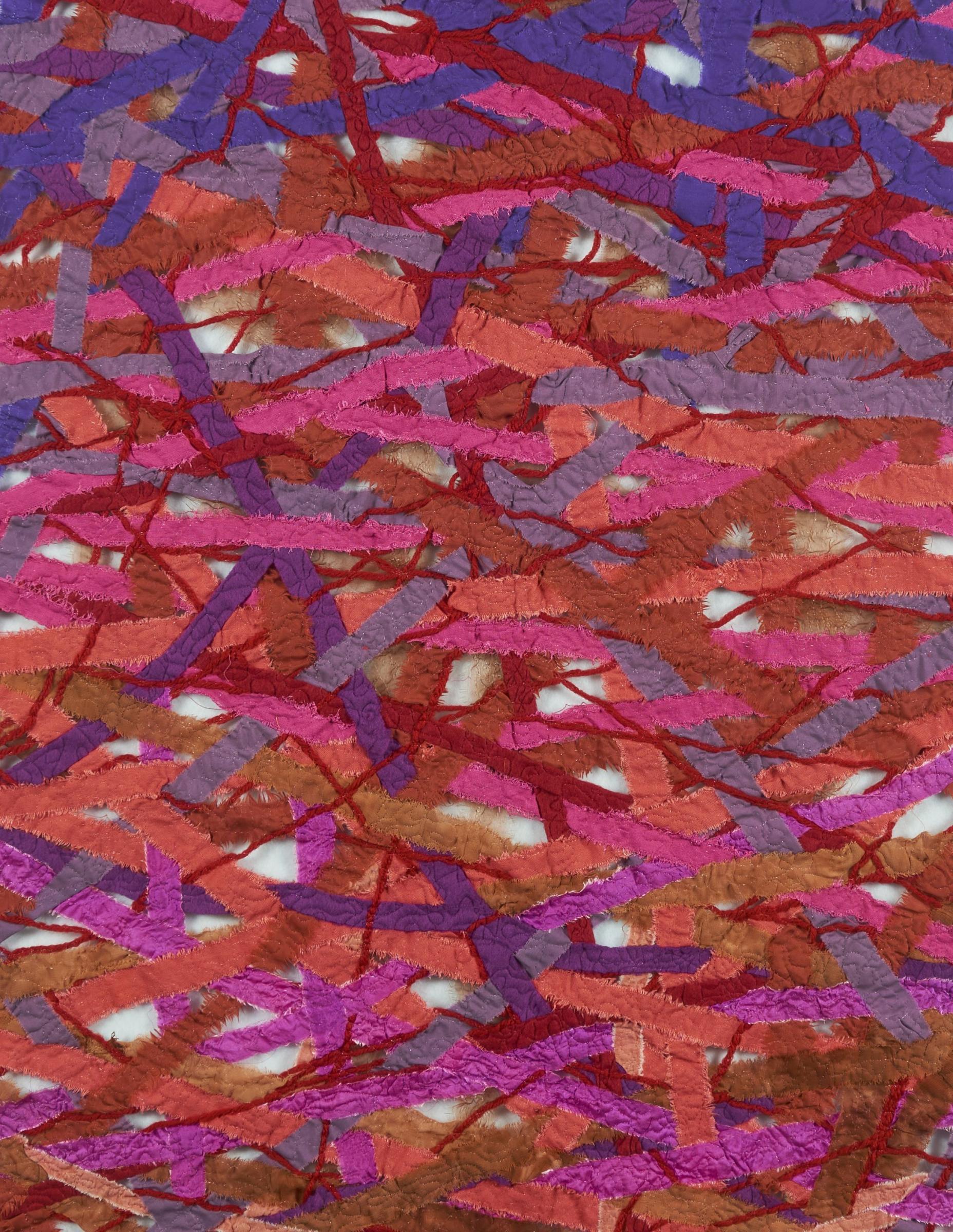 I pioneered this technique which includes fabric deconstruction and manipulation with abstract weaving and freemotion stitching - creating a layered & open textured quilt.