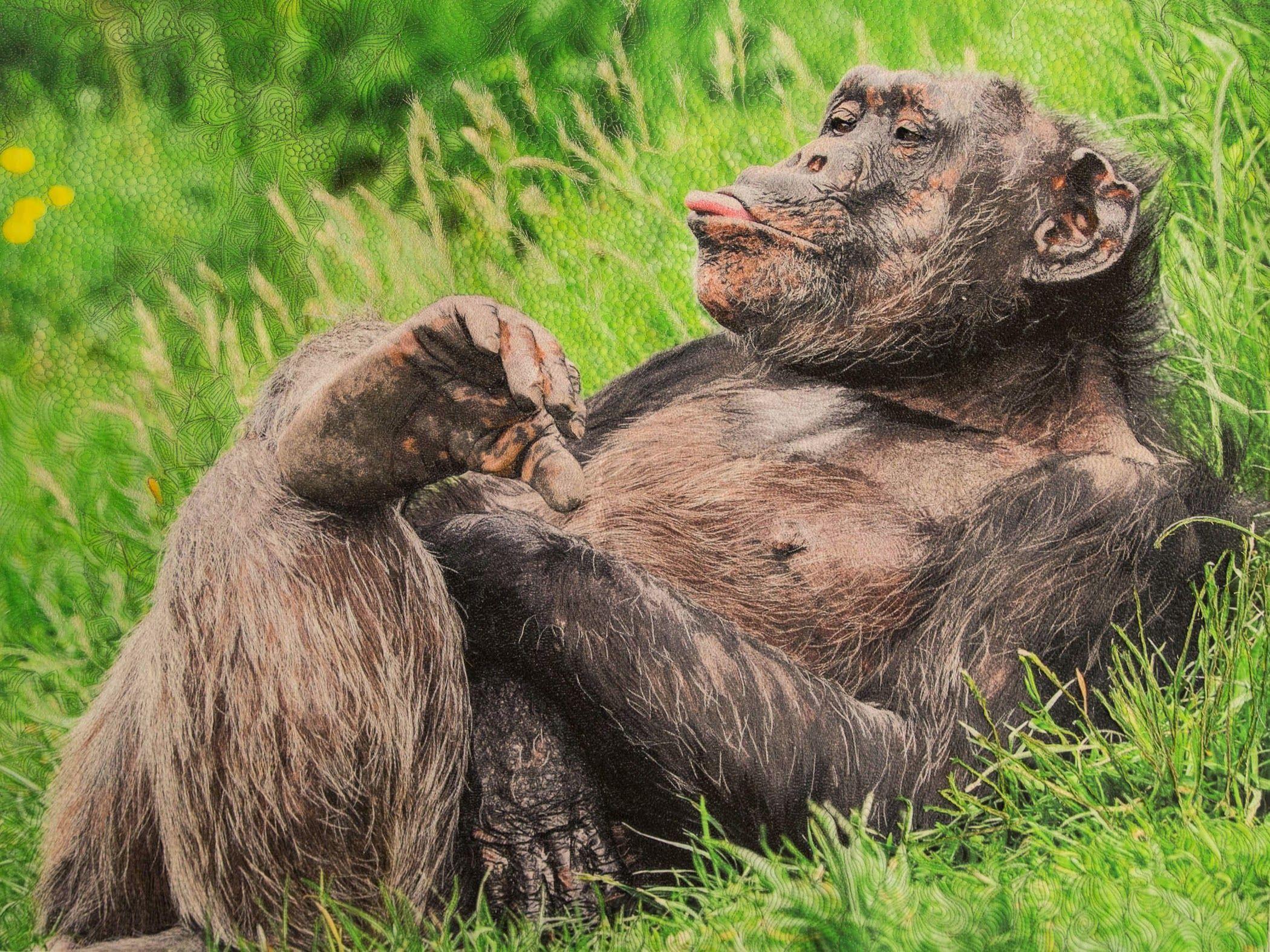 Browse the Collection No Worries! Jennifer Day Size 28 in x 37 in (71 cm x 94 cm) Exhibition Wild Fabrications (SAQA Global Exhibition) Price $0.00 Buy Now >> This silverback gorilla certainly sums up his thoughts about the day by relaxing and sticking his tongue out at a passerby. He does not have a care in the world. With his cocky attitude, this guy brings joy to all who view him.
