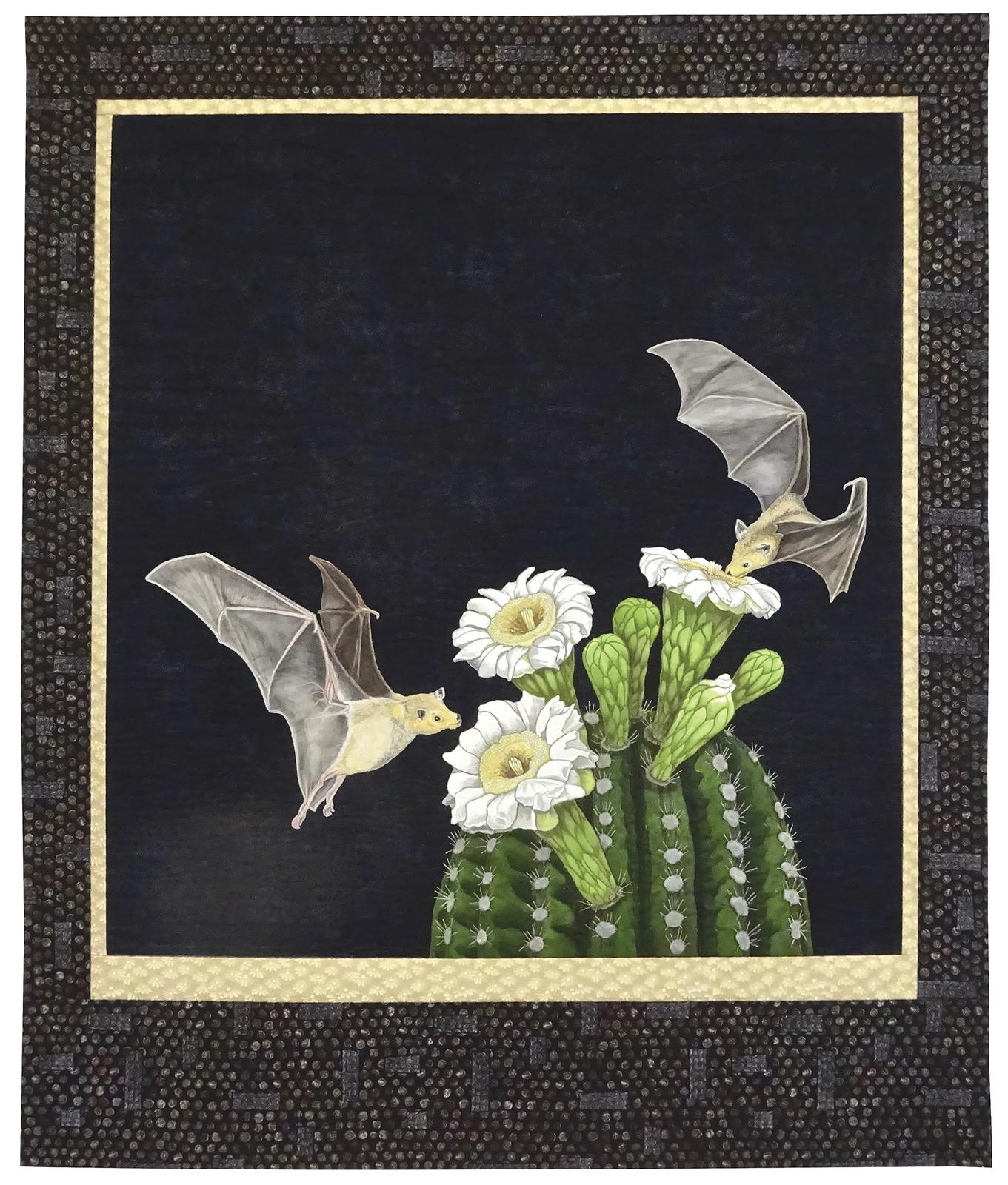 In the desert of the American Southwest, lesser longnosed bats seek out the night blooming flowers of the Saguaro cactus. During the night, bats fly from flower to flower. While sipping nectar with their long tongues, they gather pollen on their faces. As they continue to feed they carry the pollen to other flowers and cactus, pollinating them in the process. There is a delicate nocturnal exchange between bat and flower, each uniquely suited and dependent on the other.