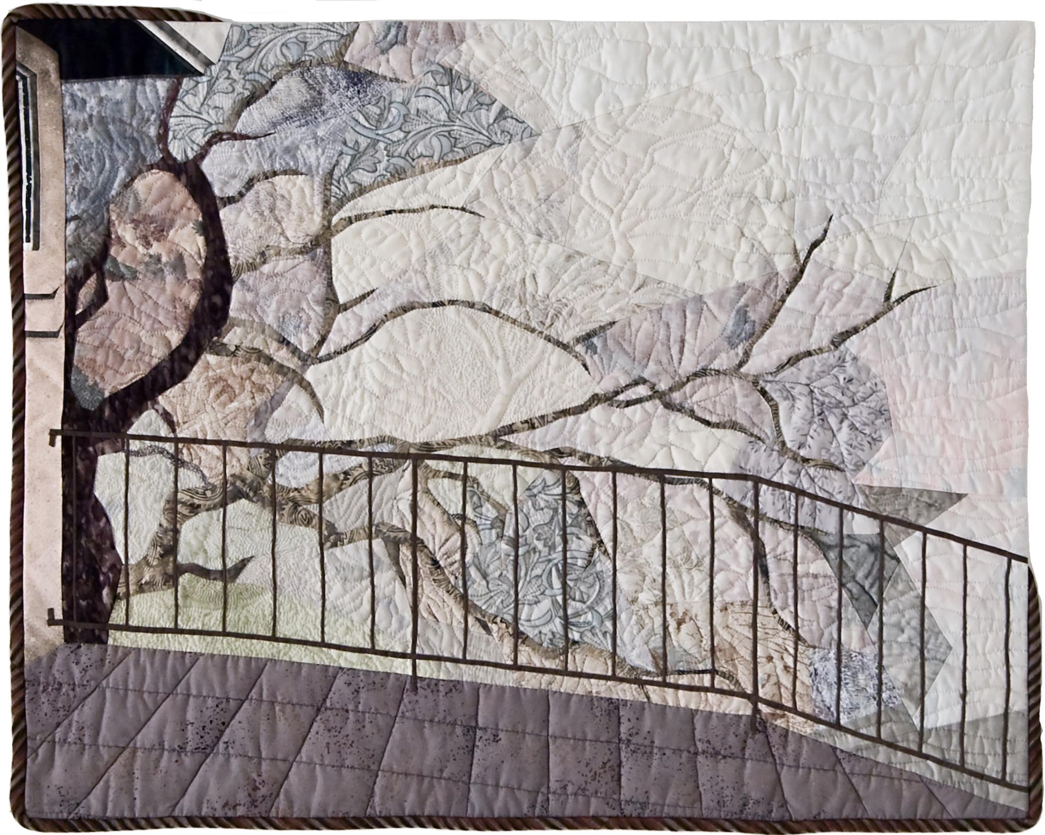 Since early in my art journey I've been inspired by the details of architectural structures. Part of our house and balcony were caught in this image of the oak nearby.