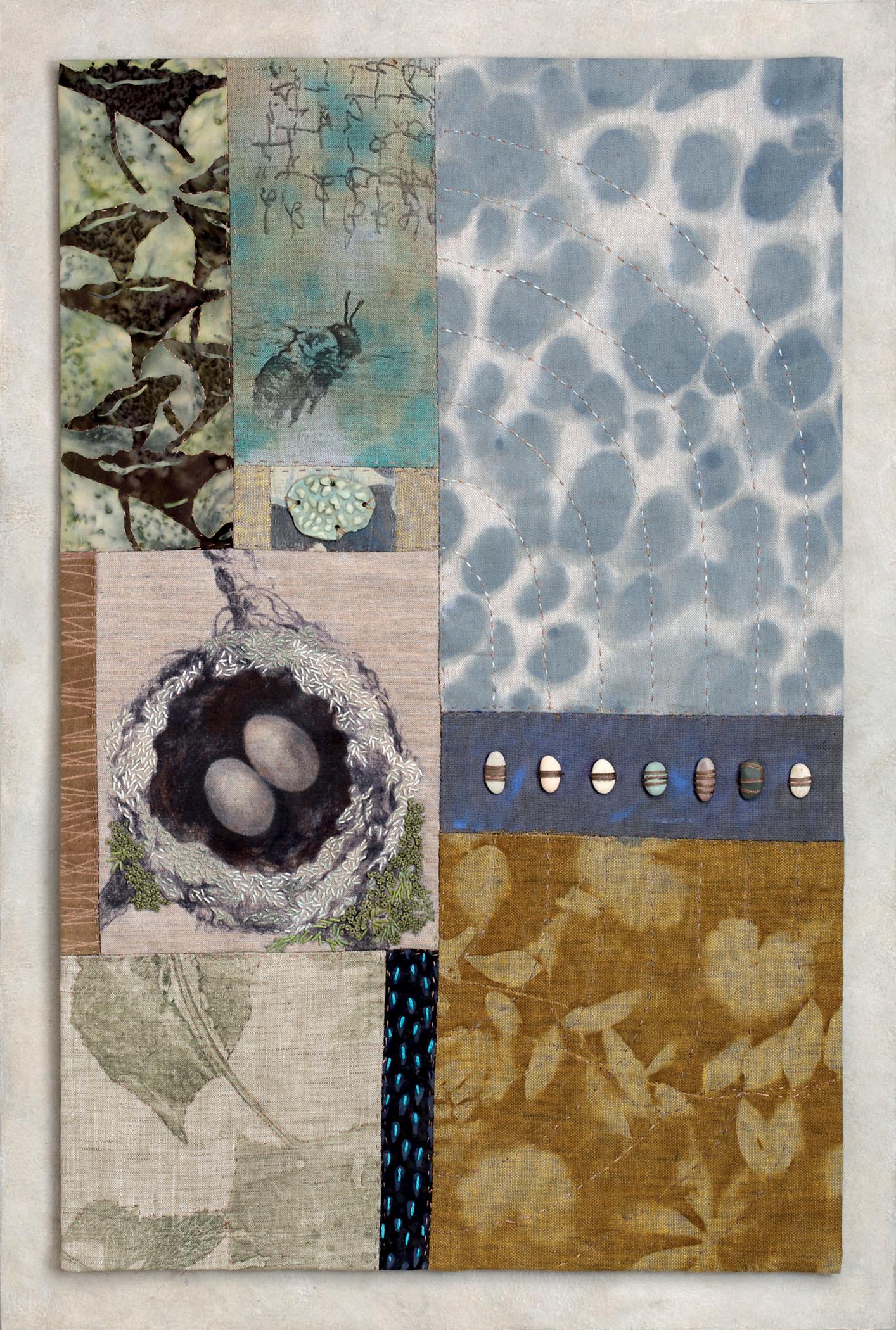 Hand stitched, embroidered, transferred, sunprinted, painted