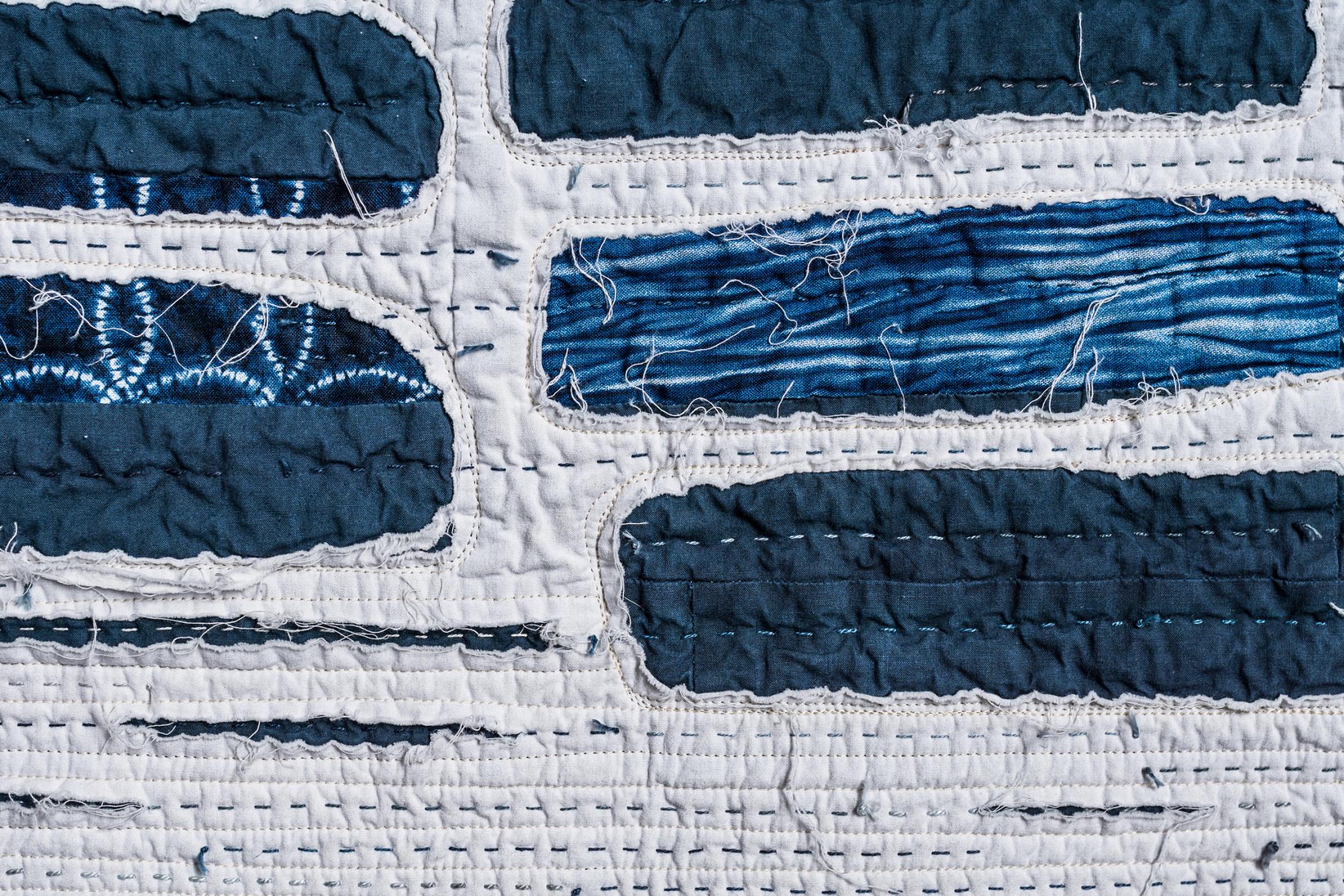 Raw edge reverse appliquéd, machine and big stitch quilted