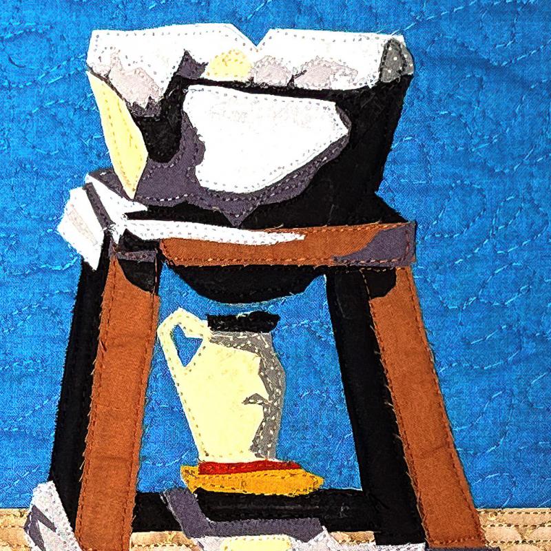 Commercial fabric, machine quilted, hand stitched, raw edge pieced