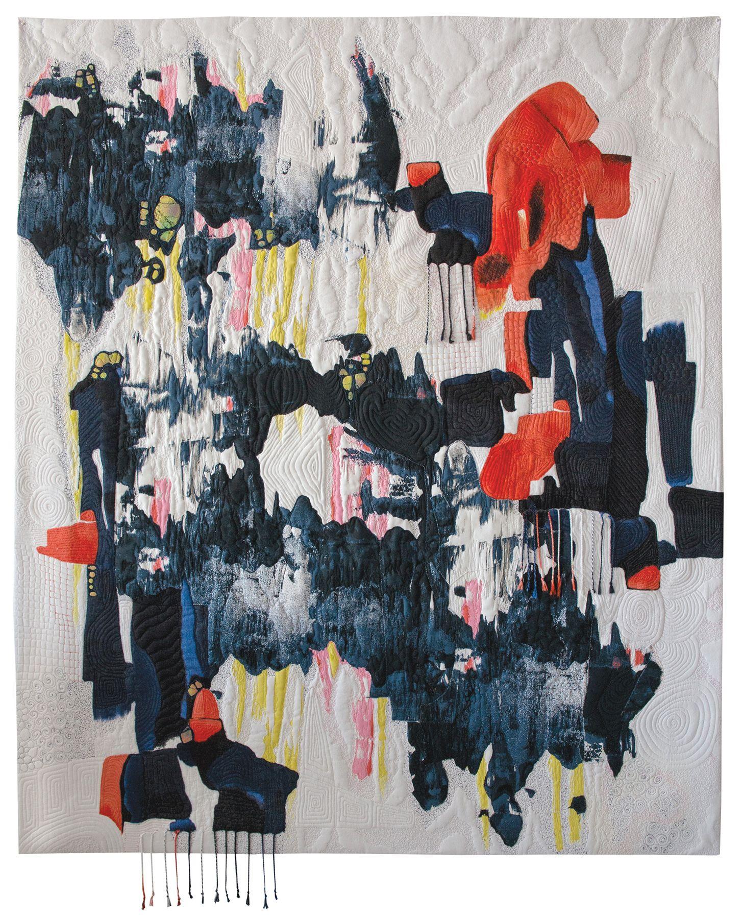 That's right, this was once a cute outfit! I am always looking for clothes and scarves to repurpose. This fabric had great colors and lines—perfect for an abstract art piece. I loved the simple fringe on the scarf so I decided to incorporate it into the artwork.