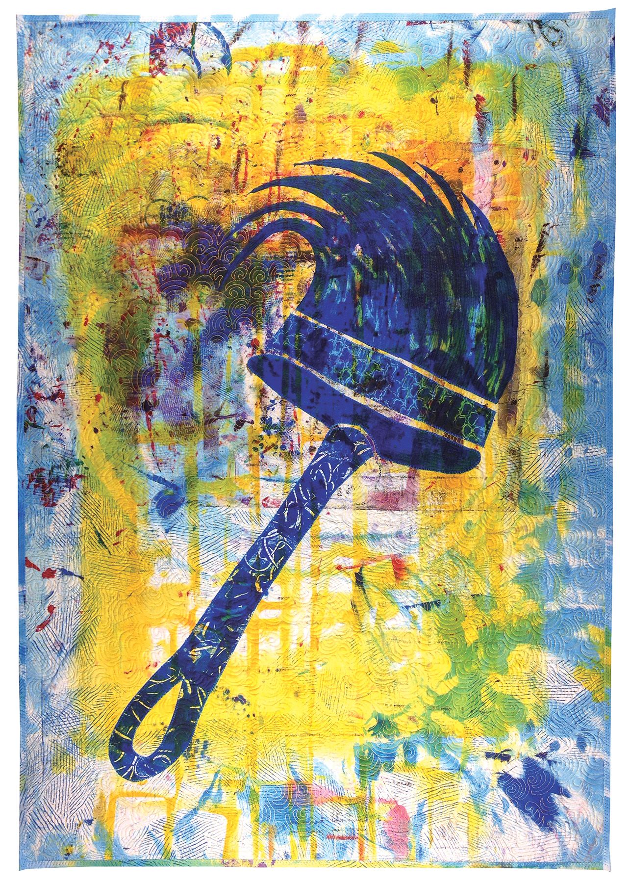Each time I dye or print a fabric for my artwork, I place a cotton drop cloth on the print table. These utilitarian fabrics collect the dribbles, stains, and shadows of the colorful inks and dyes. Like a journal, I can "read" the drop cloth fabric and reminisce about the art I've made, and events in my life during the painting process. My collection of drop cloths are now being recycled into art and carry these memories with them.