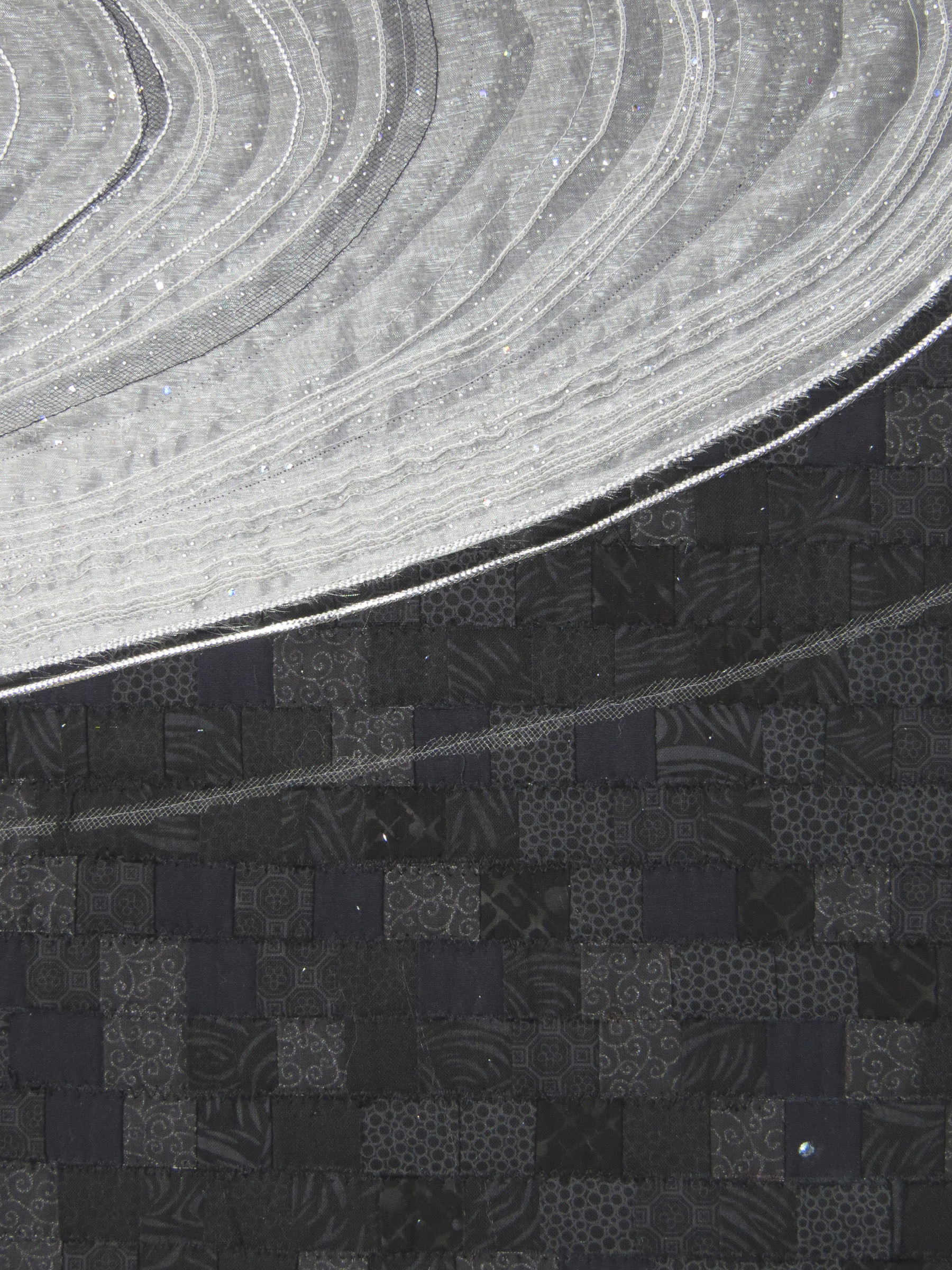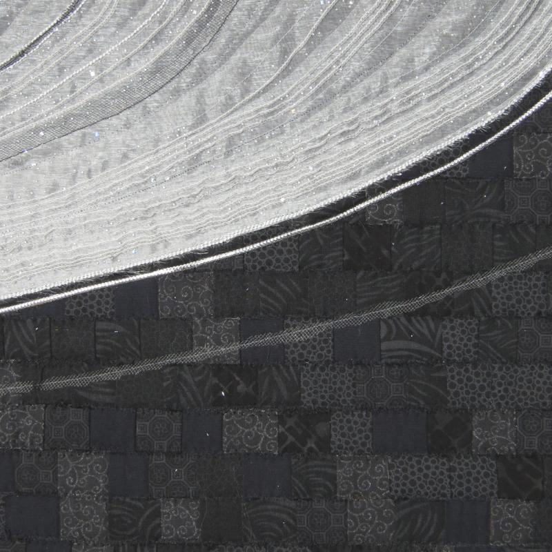 Raw edge appliquéd, machine pieced, machine pin tucked, hand stitched, foiled