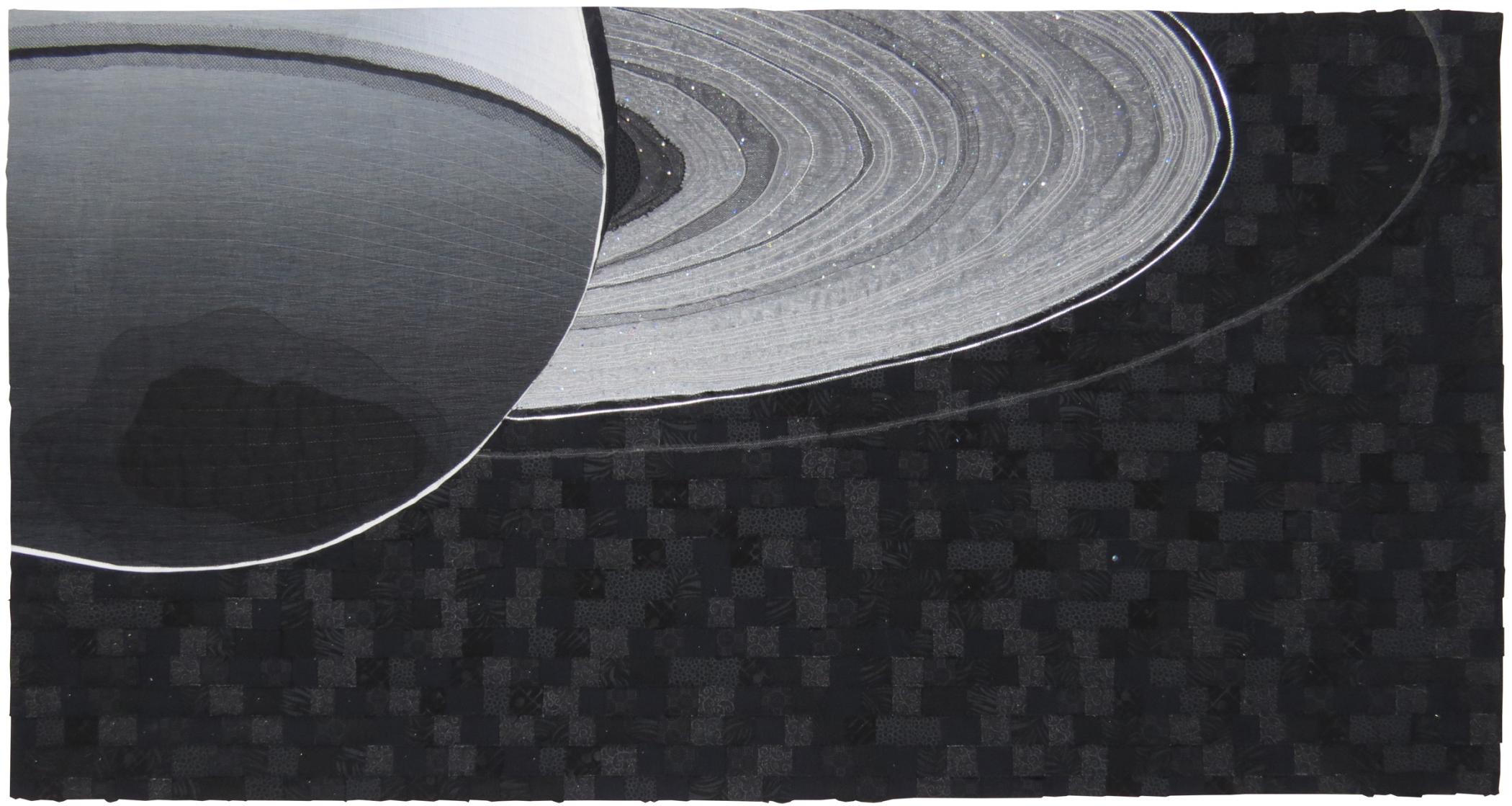 On July 19, 2013, Earth was imaged from the outer solar system (for the third time) by the Cassini spacecraft’s camera. Those images inspired this work. At this distance, the dynamism of Saturn’s rings and moons are evident, while one can barely see the “pale blue dot” of our home planet.