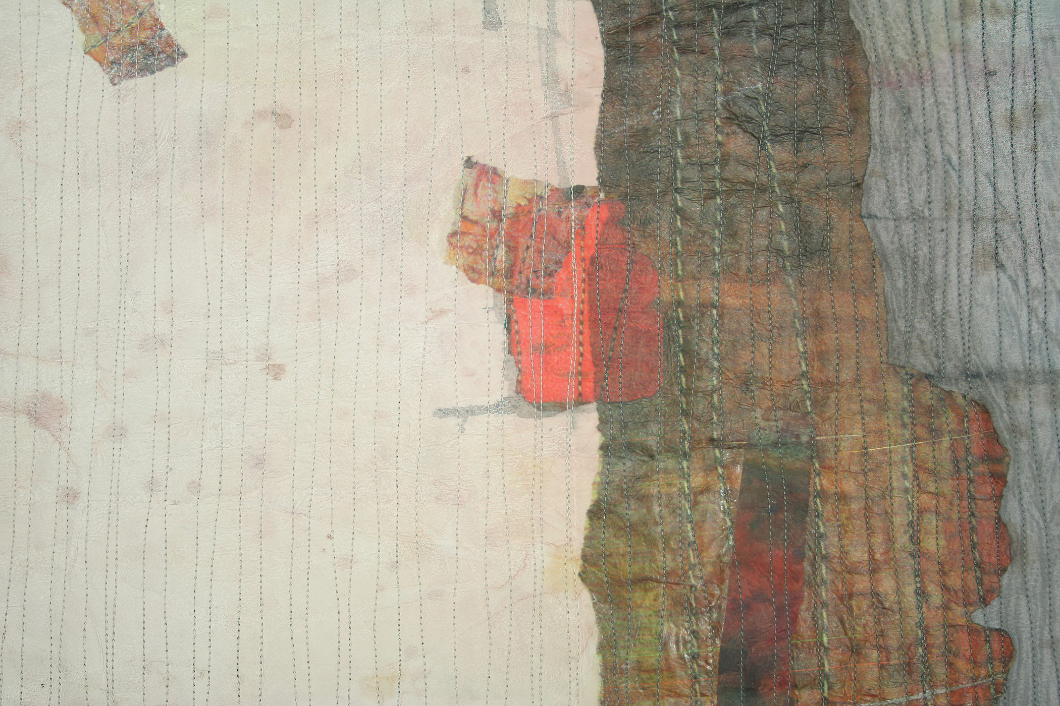 Like most, I can never get enough “Italy”. It is such a special place whose earthy colors, intriguing patterns and crumbling shapes have found their way into my abstract work. I found the secret passageways in the old historical sites most fascinating and they inspired me to express their intriguing shapes in a series I call Passageways. The surface design of my vision is expressed in my watercolor painted fabric and paper.