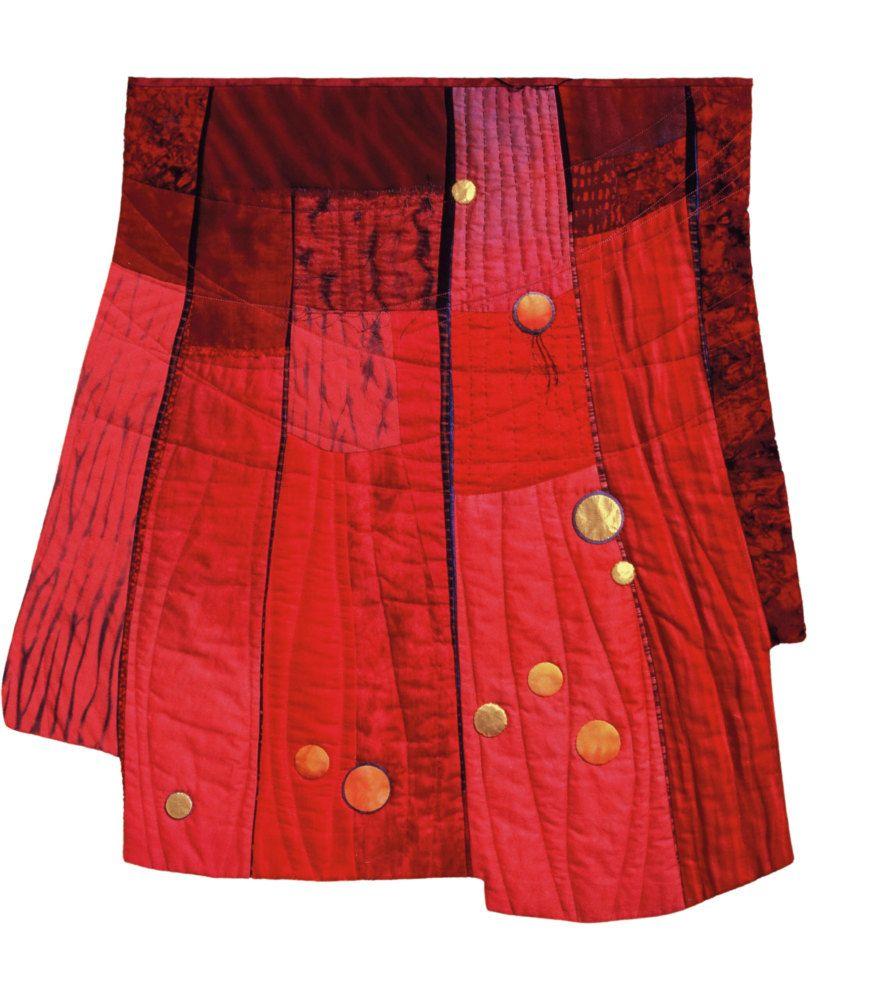 This piece was inspired by a photograph of a Gloxinia flower covered with pollen grains. I loved the glowing reds as well as the textures of the pollen and fine black hair on the petals. I simplified the design to merely suggest the secrets that the flower was revealing and was surprised that it ended up suggesting the shape of an African skirt, revealing my sense of place.