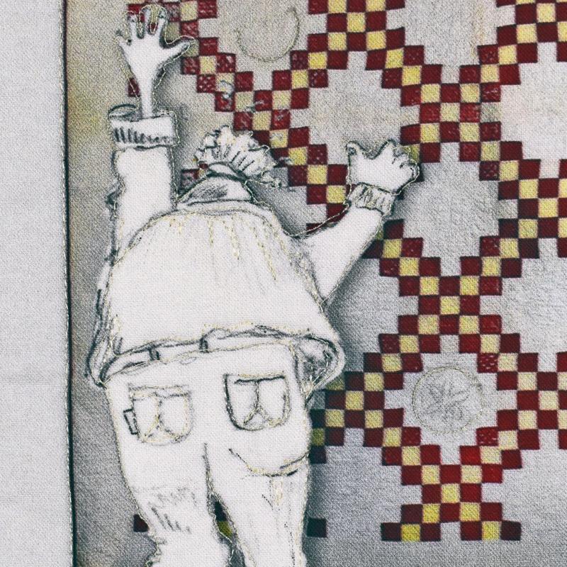 Ink, fabric pencils & dyes, photo transfer, silk, cotton