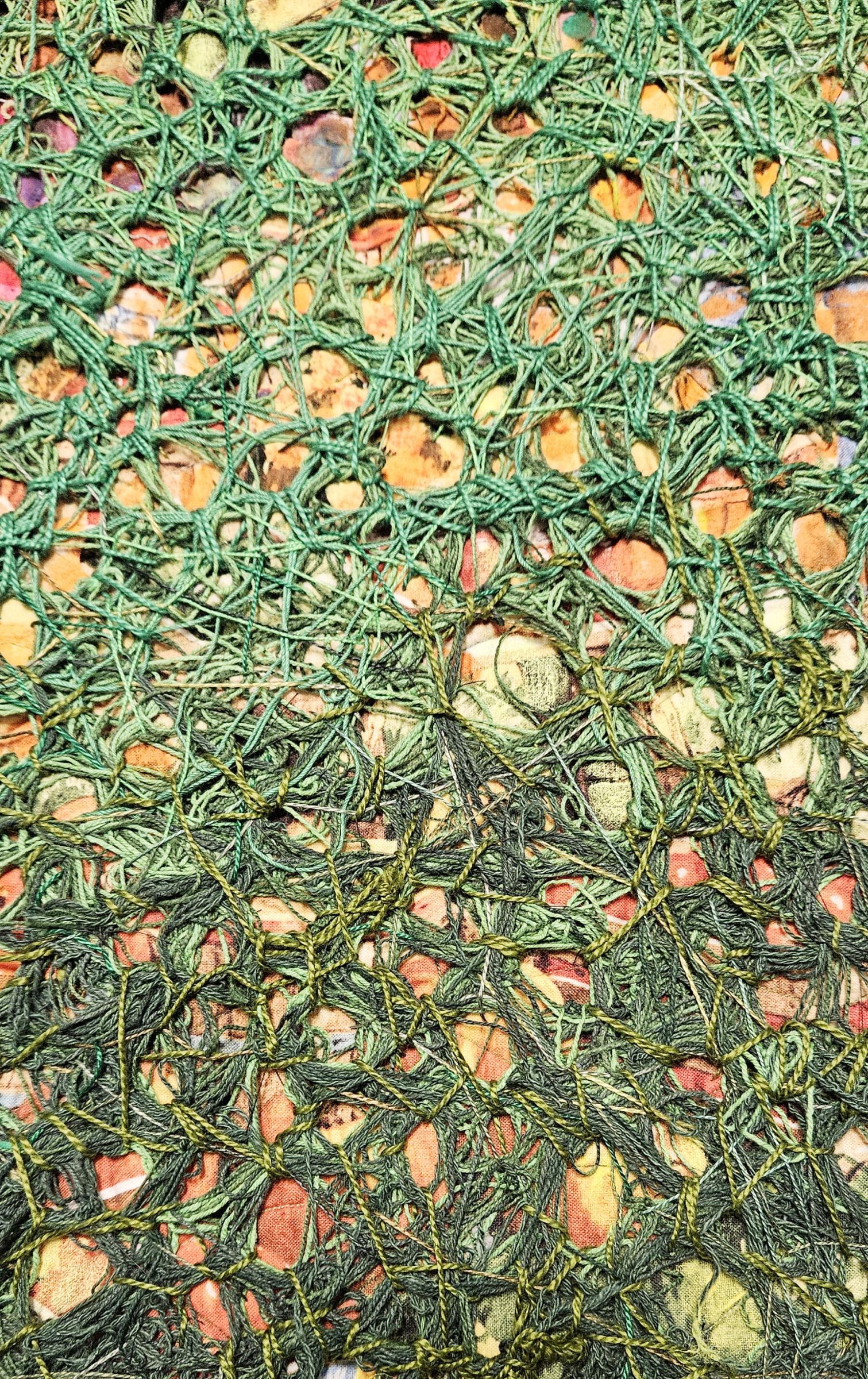 Perle cotton, artist's own recycled quilt