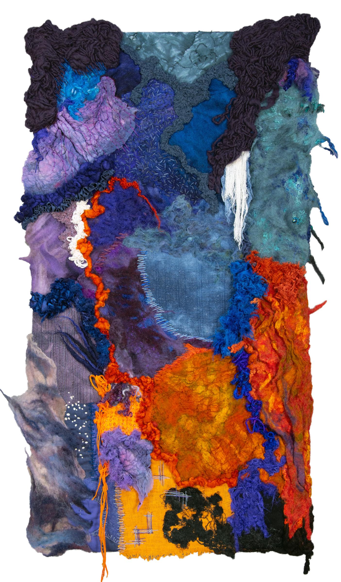 Hand and machine stitched, embroidered, nuno and wet felted, hand spun