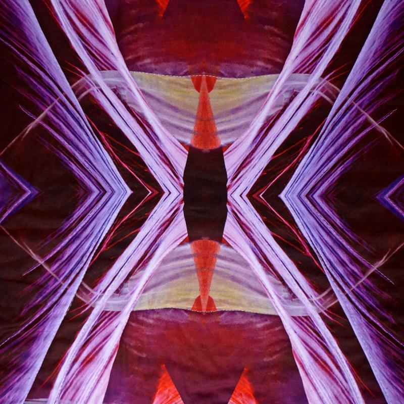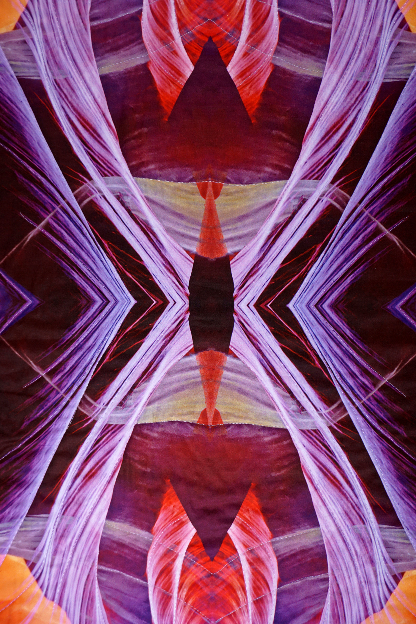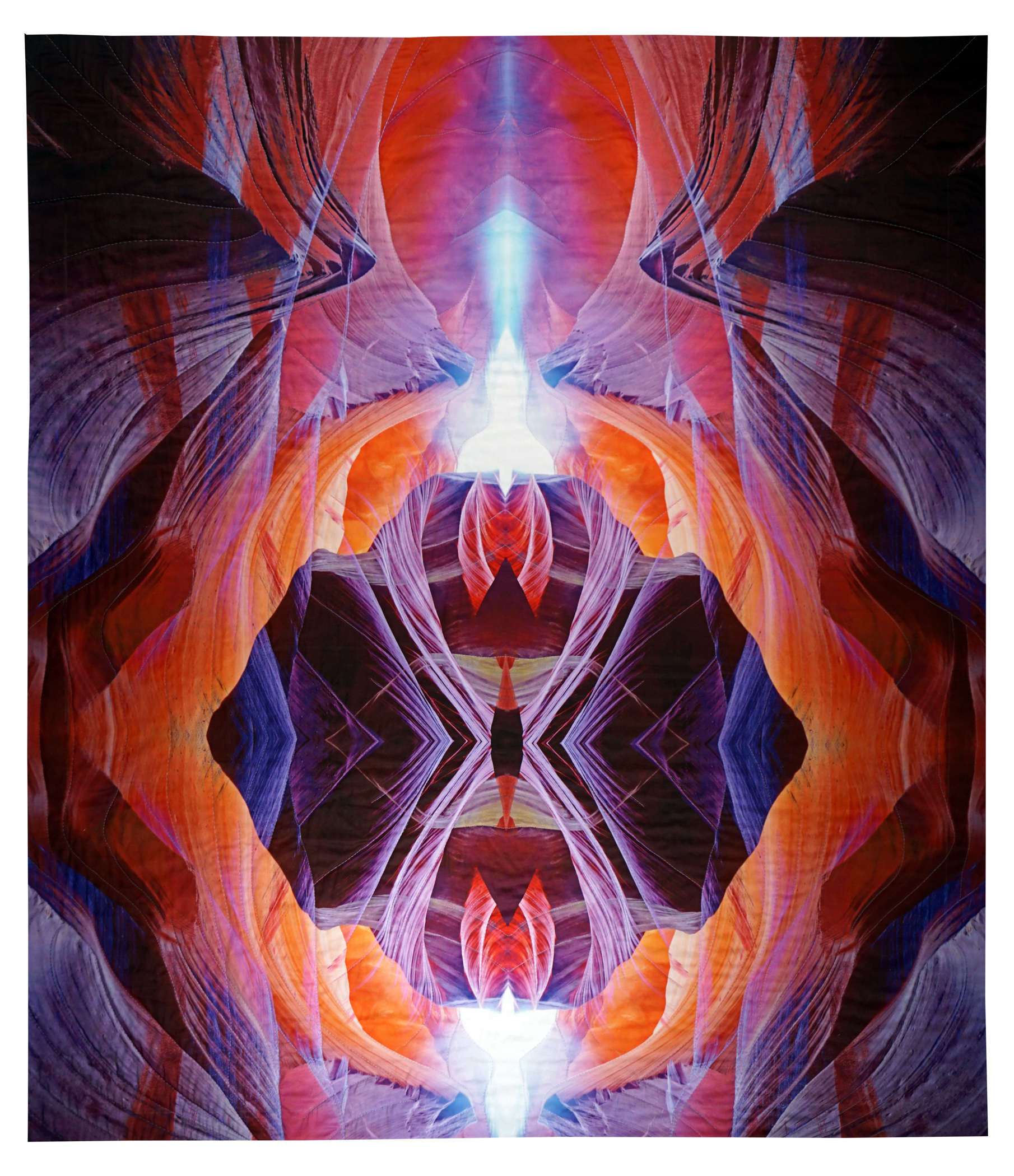 Digitally extracted, manipulated, rotated, and pieced; printed onto fabric, machine quilted