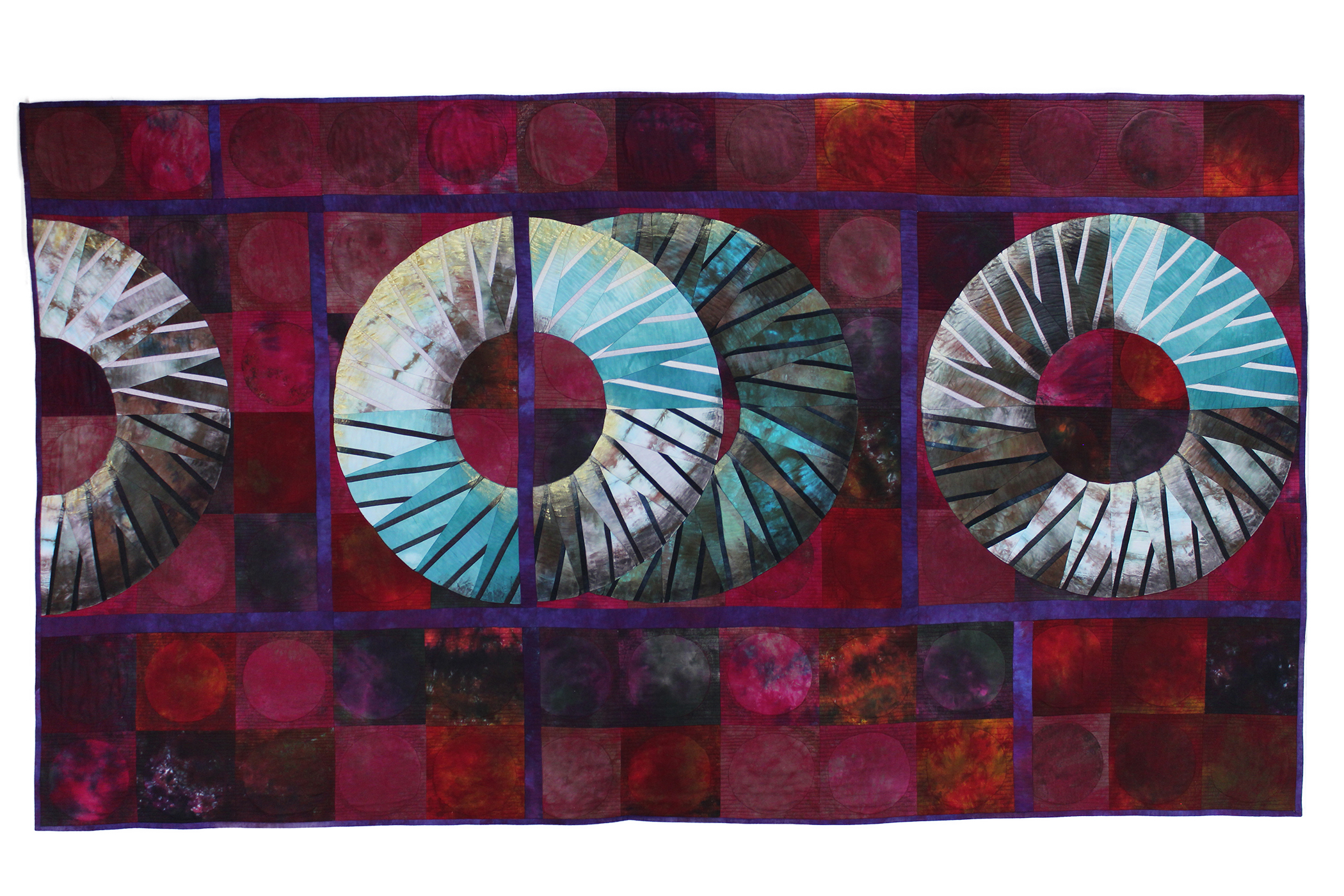 Browse the Collection Progress Lyric Montgomery Kinard Size 54 in x 98 in (137 cm x 249 cm) Price $0.00 Buy Now >> The never ending wheel of renewal. Creation. Movement. Decay. Stillness. Materials Cotton, acrylic paint Techniques Dyed, painted, pieced, machine stitched