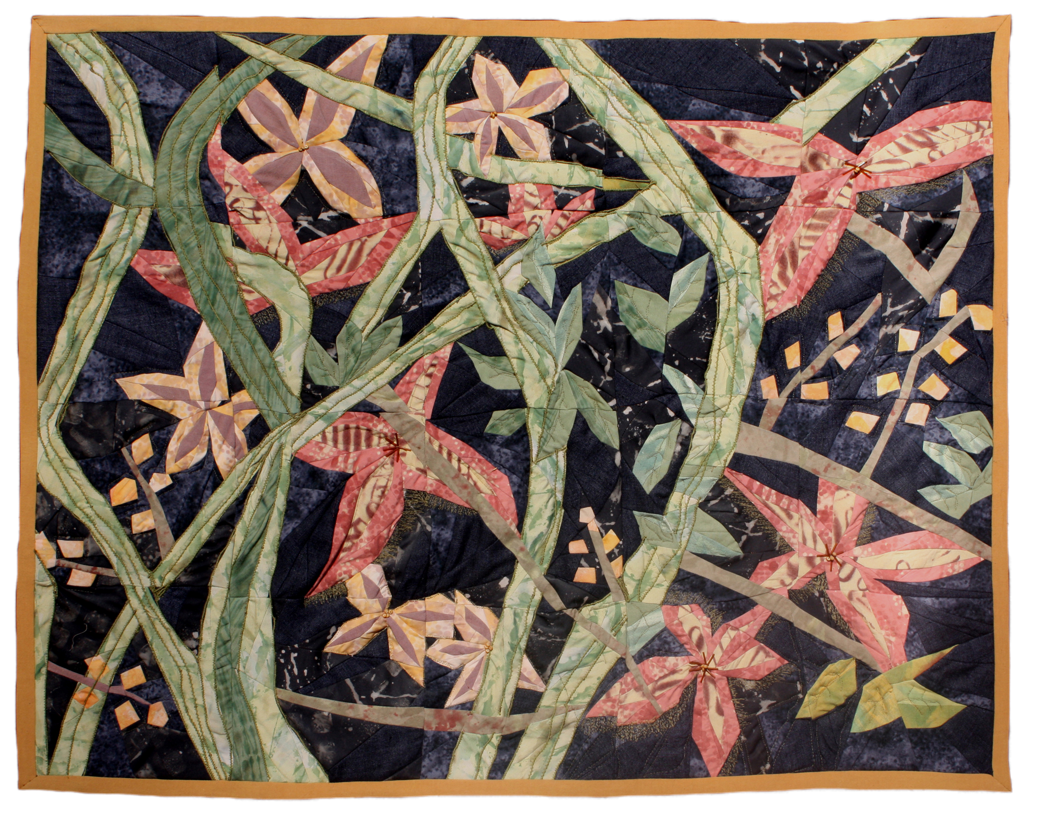 This quilt depicts chaos weeds cause when they take over your beautiful garden.