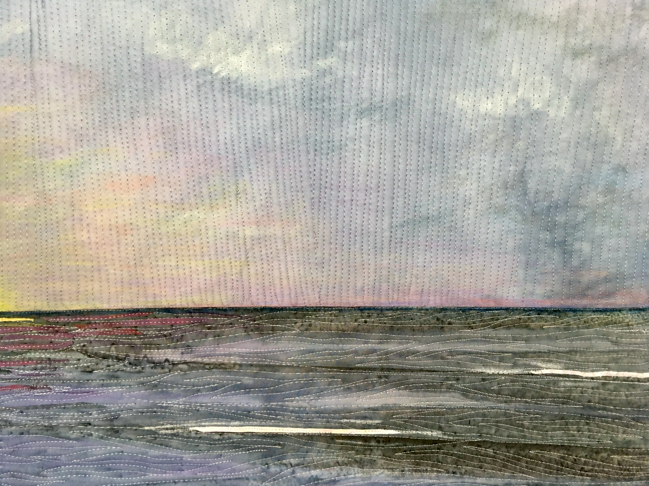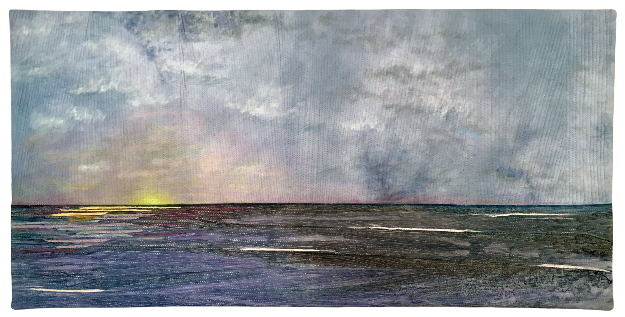 Hand-dyed and commercial fabrics, acrylic paint, Japanese inks, colored pencil, wax pastel, and a variety of threads.