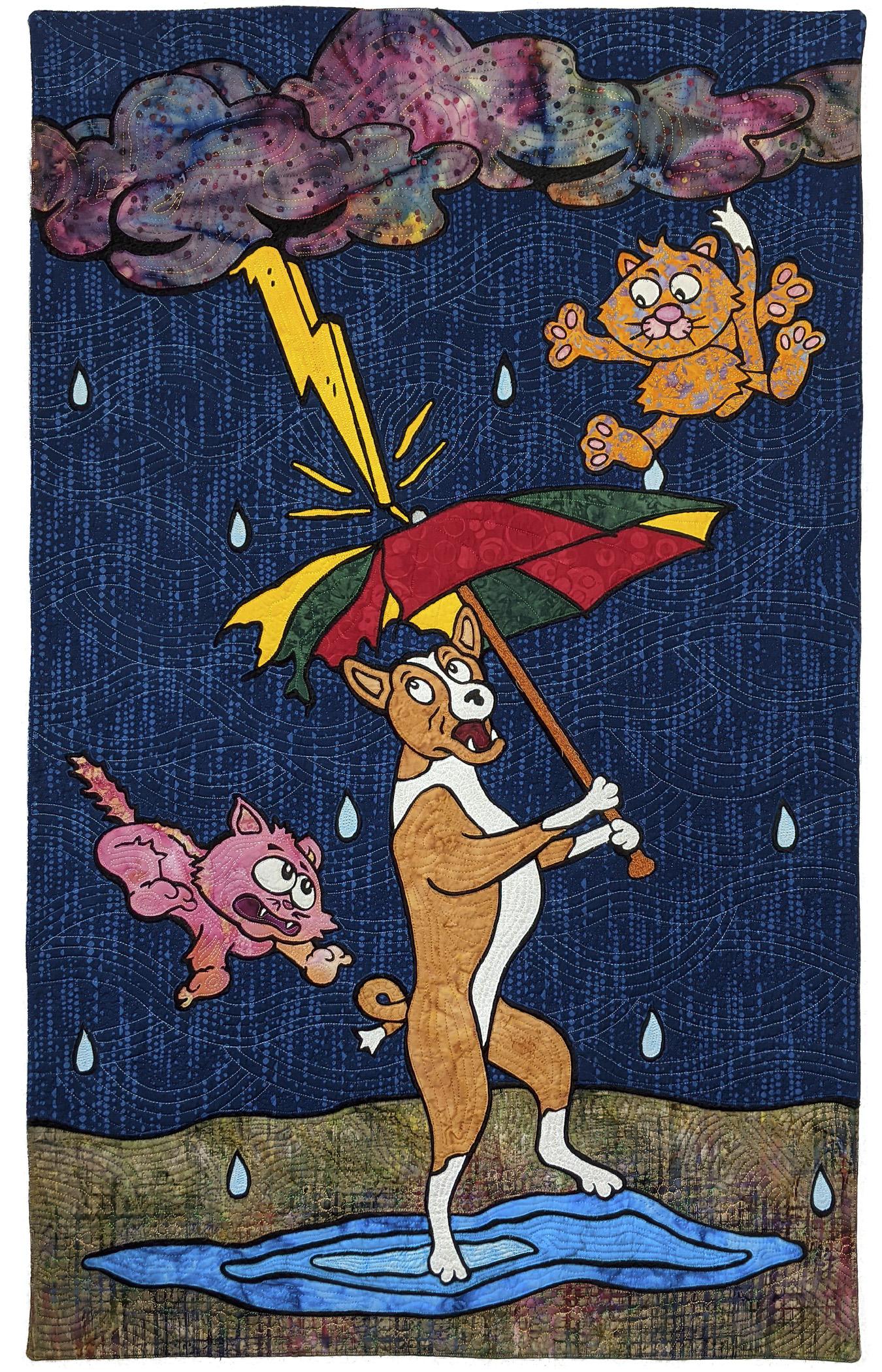 I love playing with aphorisms, meanings, and visual interpretations. What would it look like for literal cats to rain down on a dog, in this case, a Basenji who hates water? A fleeting lightning strike and at that moment are you able to see the cats?