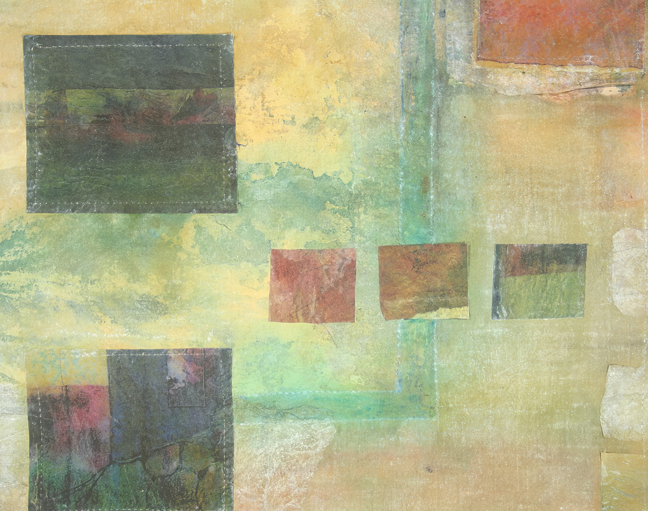 I approach fiber work from the viewpoint of a watercolor artist. Many of my abstract watercolor paintings were designed around geometric forms. Now that love of geometric combined with organic forms has influenced my art quilts. "Re-Imagined II" combines the free-flowing organic look produced by intuitively using watercolor to create surface design. Large pieces became the textured substrate. Smaller collaged pieces created the design and express structured geometric imagery.