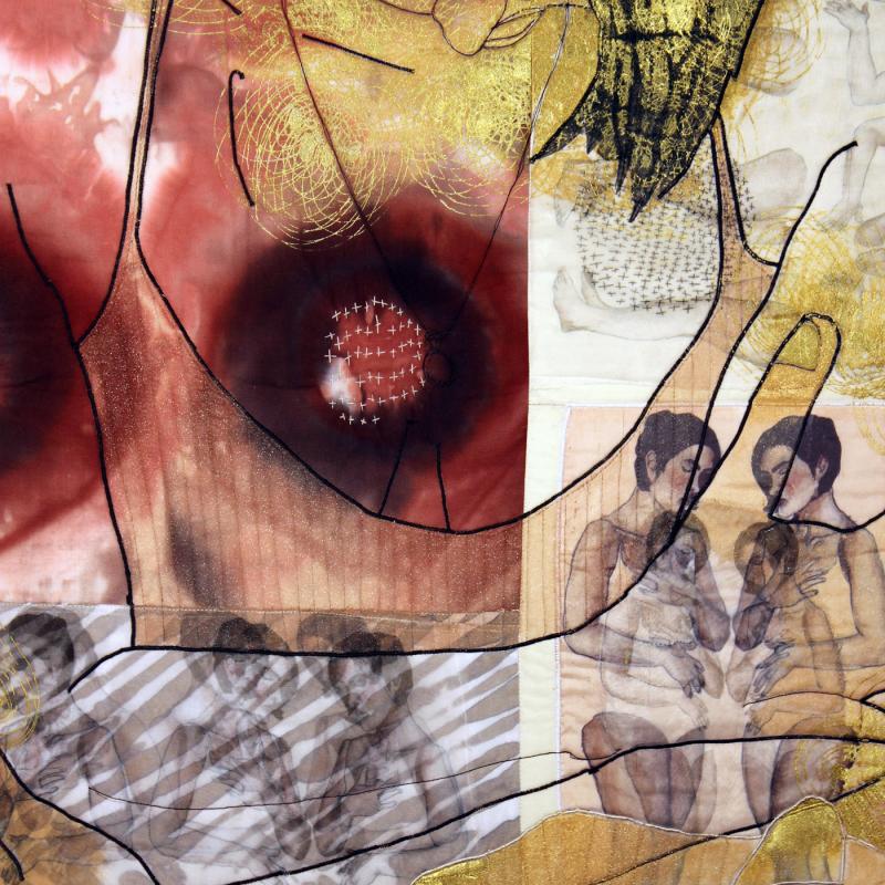 Digitally printed, screen printed, painted, dyed, machine quilted, embroidered