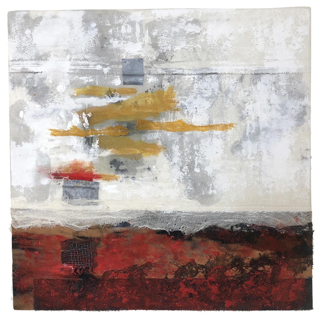 Browse the Collection Red Storm Fenella Davies Size 20 in x 20 in (51 cm x 51 cm) Year 2020 Gallery 2021 Portfolio Collection (Juried Artist Showcase) Related Publications Art Quilt Quarterly - #27 Price $0.00 Buy Now >> One of a series based on the seas and the effects of the weather at sea. Materials Cotton, lead flashing, scrim, Japanese matting Techniques Hand painted, collaged, stitched