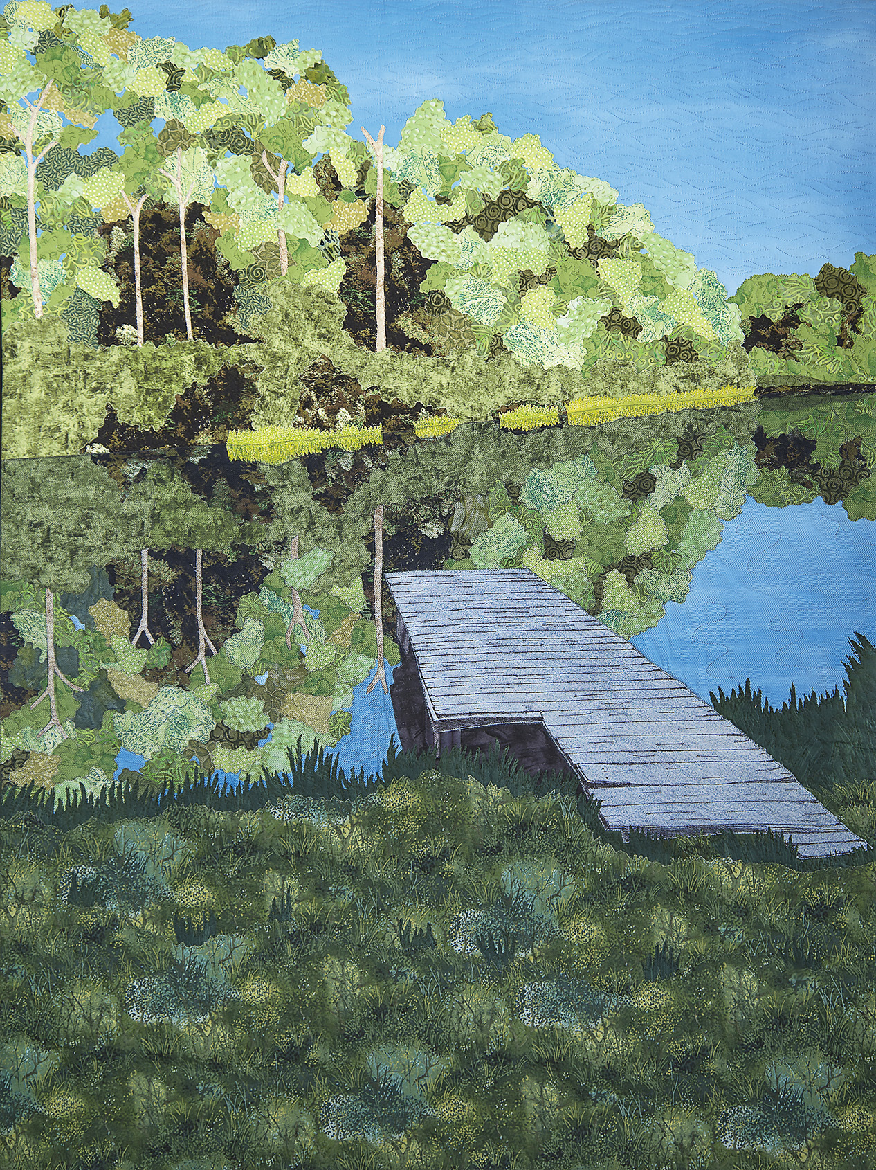 Fusible, raw-edge machine appliqué, fabric painting, thread painting, machine quilting.