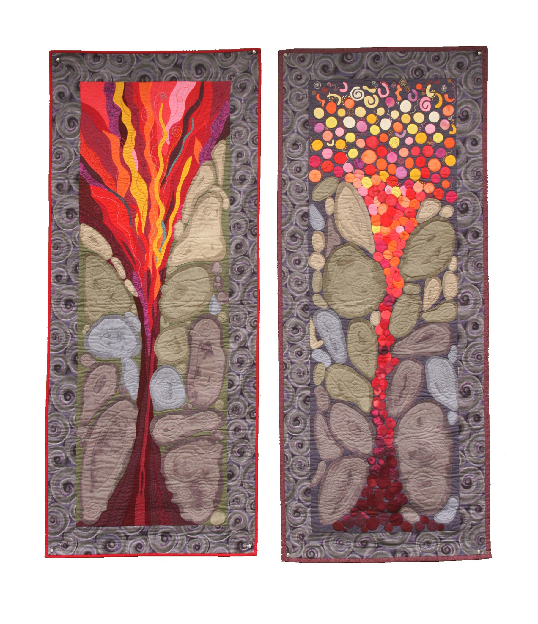 Having grown up in a world full of too many rules, finding a way out of that emotional confinement was the focus of my early work. This pair of award-winning appliqu�d and embroidered quilts explores the release of that tension. Each panel measures 64.5"H x 24.5"W.