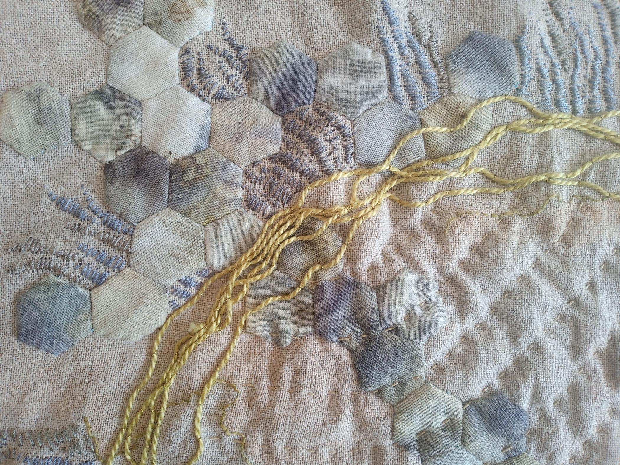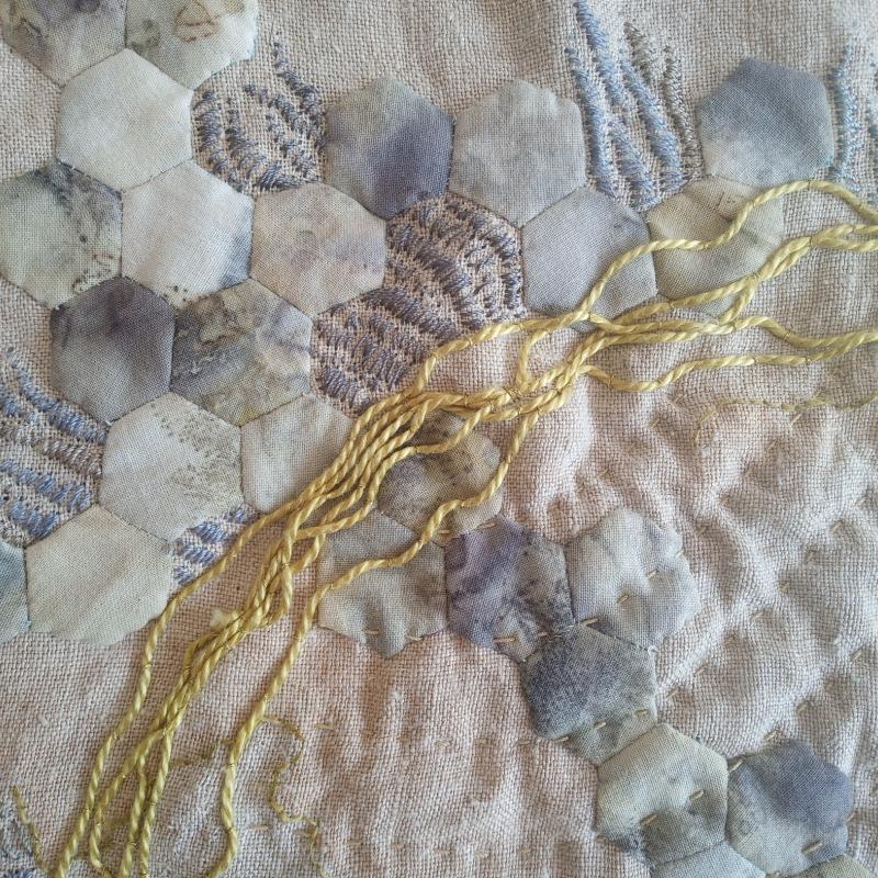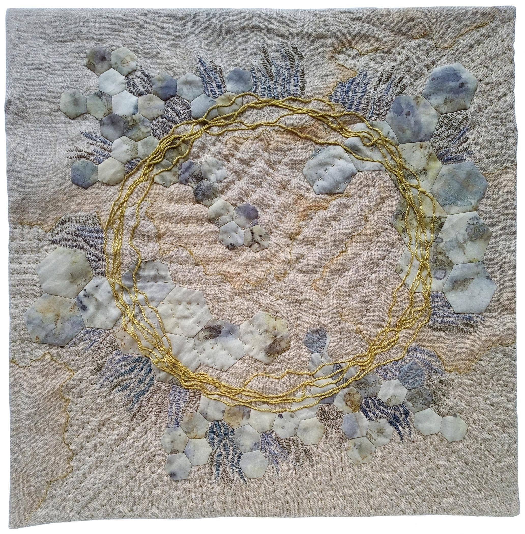 Sitting in my kitchen, the evening that the first COVID-19 lockdown was announced in the UK, I grounded myself by watching the light-play on the wall above the table. Our home immediately became our safe harbour, a place of stillness and sanctuary. Twenty months later, inspired by the same dancing shadows, this piece is my response to a remembering of that time; of how we stayed home and waited, whilst the world held its breath. We were safe there.