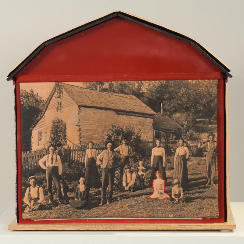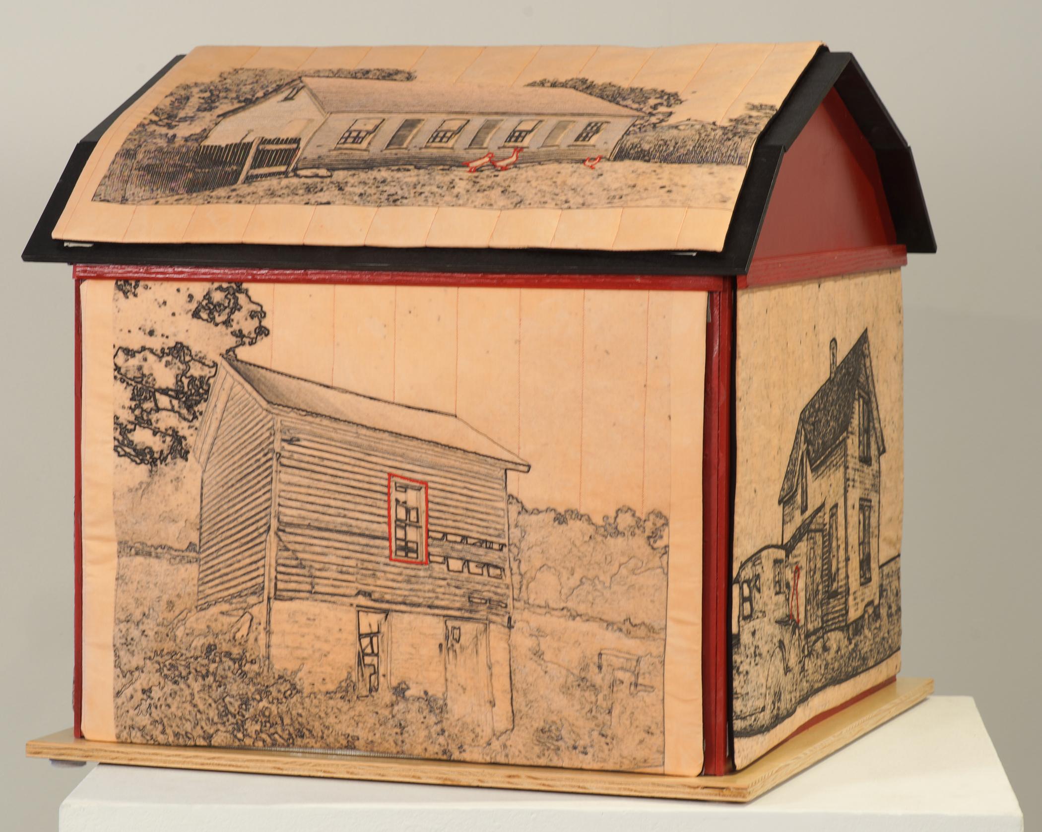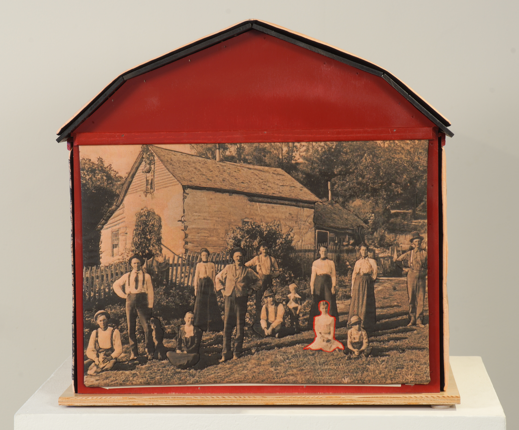 I inherited many old photographs of my pioneering grandparents, their families and their midwestern farms. The legacy of hard work, commitment to a community and to an extended family run deep. As a tribute to my grandparents’ tenacity and spirit, I created a “farmhouse” and a “barn” of quilted panels from family photos I manipulated and stitched. “Remembrance 2” is the barn.