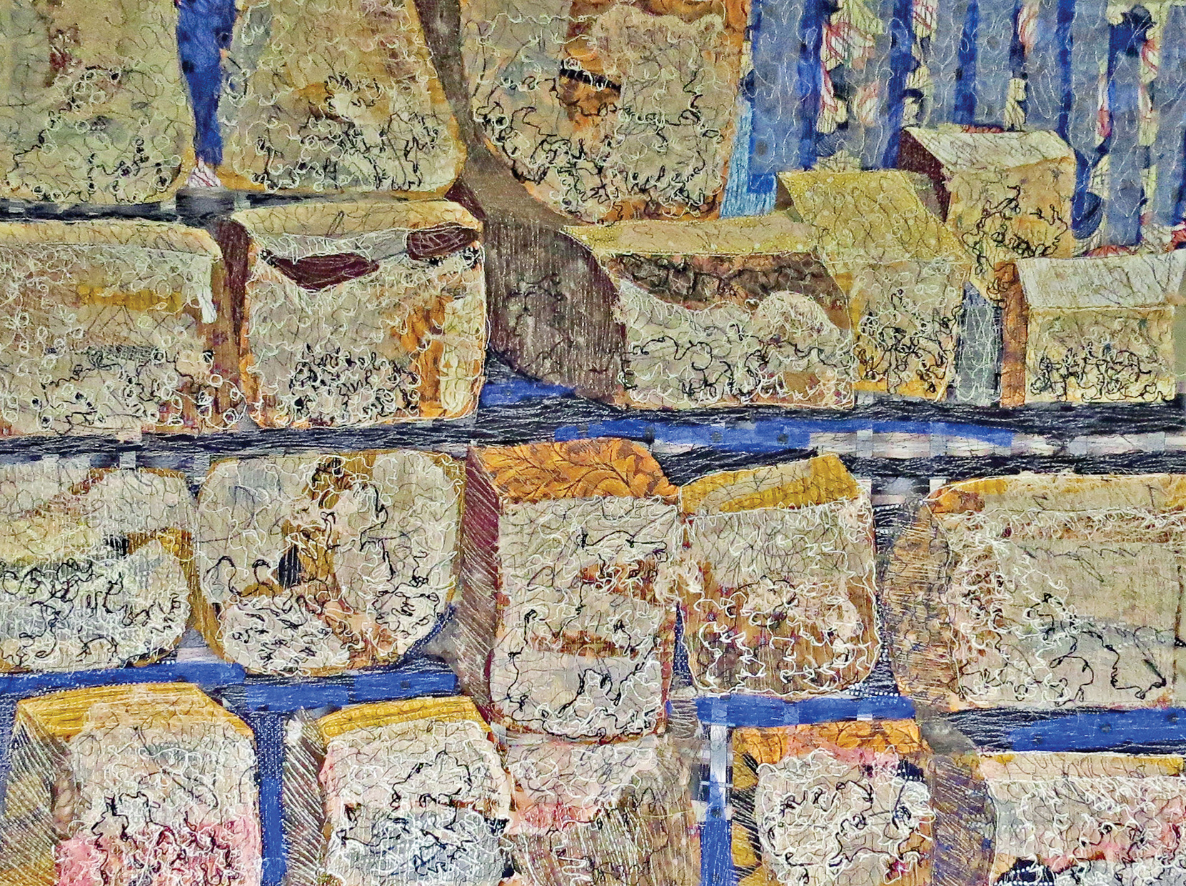 Browse the Collection Rock Wall Sylvia Weir Size 20 in x 30 in (51 cm x 76 cm) Year 2019 Related Publications Art Quilt Quarterly - #21 Price $0.00 Buy Now >> This piece was inspired by a pile of building stones on the side of a farm outbuilding. Materials Commercial and hand-dyed cottons Techniques Hand appliquéd, stitching